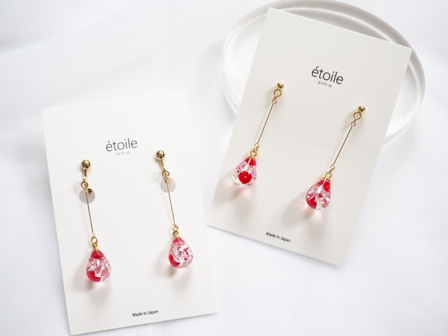高級クリスタルガラスを閉じ込めた、澄んだしずく型をあしらった、ハンドメイドならではのロングデザインピアス/イヤリング。 動きに合わせて軽やかに揺れ、耳元に繊細な輝きとエレガントな雰囲気を添えます。 〇ピアス・イヤリングからお選びいただける2タイプ展開 〇細いラインが縦のバランスを美しく見せるデザイン 〇カジュアルからフォーマルまで幅広く活用可能 華奢で洗練されたシルエットは、大人の女性のコーディネートにぴったり。 普段の装いに華を添えるだけでなく、ブライダルやパーティーなど特別なシーンにもおすすめです。 【素材】 高級クリスタルガラス使用、レジン ピアス:サージカルステンレス 【サイズ】 約4.1cm(ピアスホールからの長さ) ----------購入の際の注意点---------- ★ご注文を頂いてからお作りいたします。 作成に7日ほど頂きますので、ご了承下さいませ。 (ご注文状況により発送が早まる場合もございます) ☆クリックポストでは日にち指定はできませんので、ご了承下さい。 日時指定をされる際には購入情報入力画面の配送方法にて、必ず【宅急便コンパクト】をお選びください。 お選び頂けない場合は、クリックポストでの発送となります。 ★商品が不良品であった場合を除き、お客様のご都合による返品・交換はご遠慮いただきますようお願い申し上げます。 ☆商品に使っております金具は金属アレルギー対応になっておりますが、すべての方にアレルギーが出ないとは言えません。個人差がございますのでご注意ください。 ★丁寧に製作、発送前の点検を行っていますが、既製品には及びません。ハンドメイド作品ということをご理解いただいた上でのご購入をお願いします。 ☆発送後の紛失事故がありましても責任はおいかねますので予めご了承ください。 その他、ご不明な点はメッセージをお願い致します。