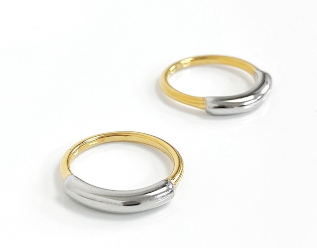シンプルでぷっくりフォルムが愛らしい、バイカラーステンレスリング。 メタルの艶やかな輝きが手元を美しく引き立ててくれます。 飽きの来ないデザインなので、普段使いはもちろん、オケージョンやパーティーなどの華やかなシーンのアクセントに最適です。 ※お肌にやさしく、錆びにも強いのが特徴のステンレス素材です。 【スペック】 リングサイズ:約11号、約13号、約16号 リング幅:1.7~3.5mm 【素材】 ステンレス(SUS316L) ----------購入の際の注意点---------- ☆クリックポストでは日にち指定はできませんので、ご了承下さい。 日時指定をされる際には購入情報入力画面の配送方法にて、必ず【宅急便コンパクト】をお選びください。 お選び頂けない場合は、クリックポストでの発送となります。 ★商品が不良品であった場合を除き、お客様のご都合による返品・交換はご遠慮いただきますようお願い申し上げます。 ☆商品に使っております金具は金属アレルギー対応になっておりますが、すべての方にアレルギーが出ないとは言えません。個人差がございますのでご注意ください。 ★丁寧に製作、発送前の点検を行っていますが、既製品には及びません。ハンドメイド作品ということをご理解いただいた上でのご購入をお願いします。 ☆発送後の紛失事故がありましても責任はおいかねますので予めご了承ください。 その他、ご不明な点はメッセージをお願い致します。