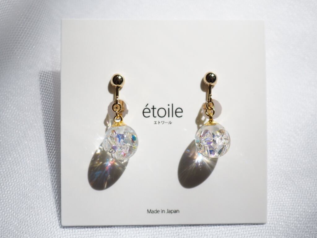 繊細に煌めく光が、まるで小さな宝石のように耳元を華やかに彩ります。