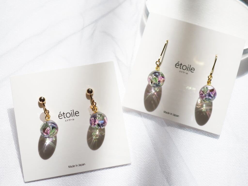繊細に煌めく光が、まるで小さな宝石のように耳元を華やかに彩ります。