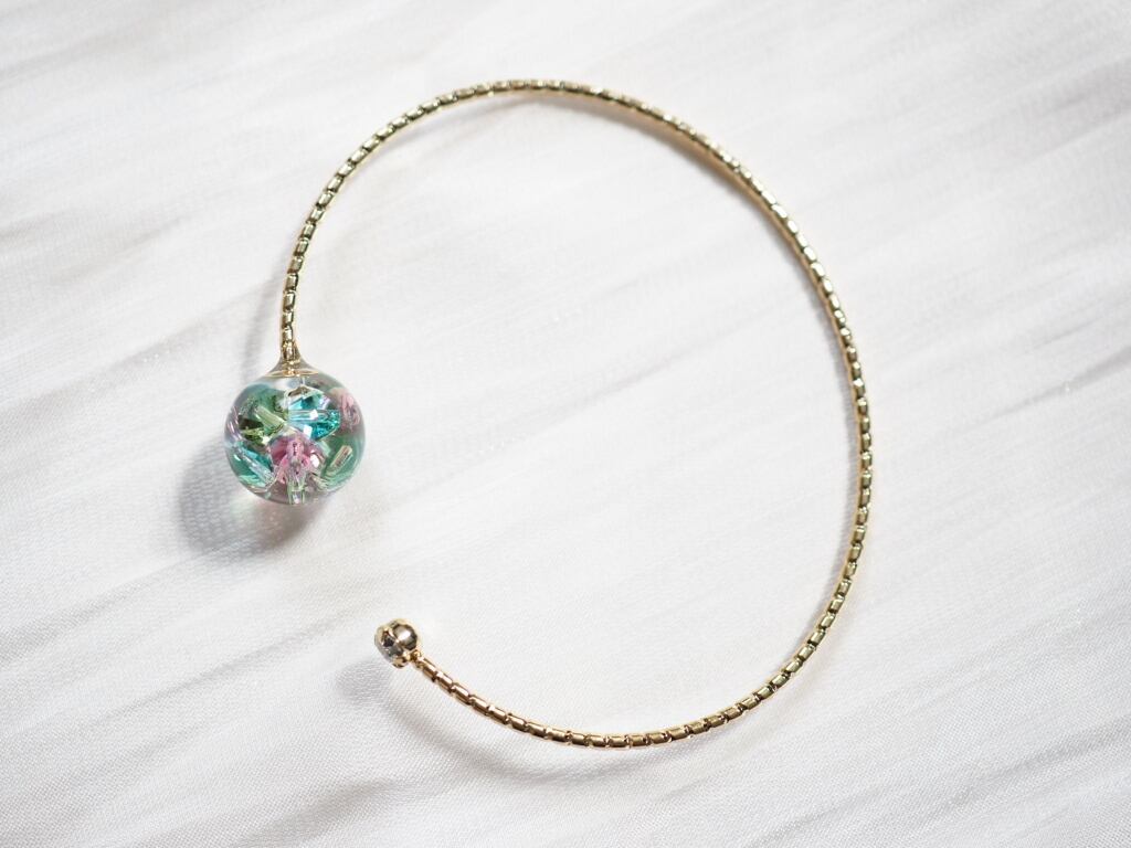 澄み渡る樹脂ドームに高級クリスタルガラスを閉じ込めた、上質なハンドメイドバングル。
