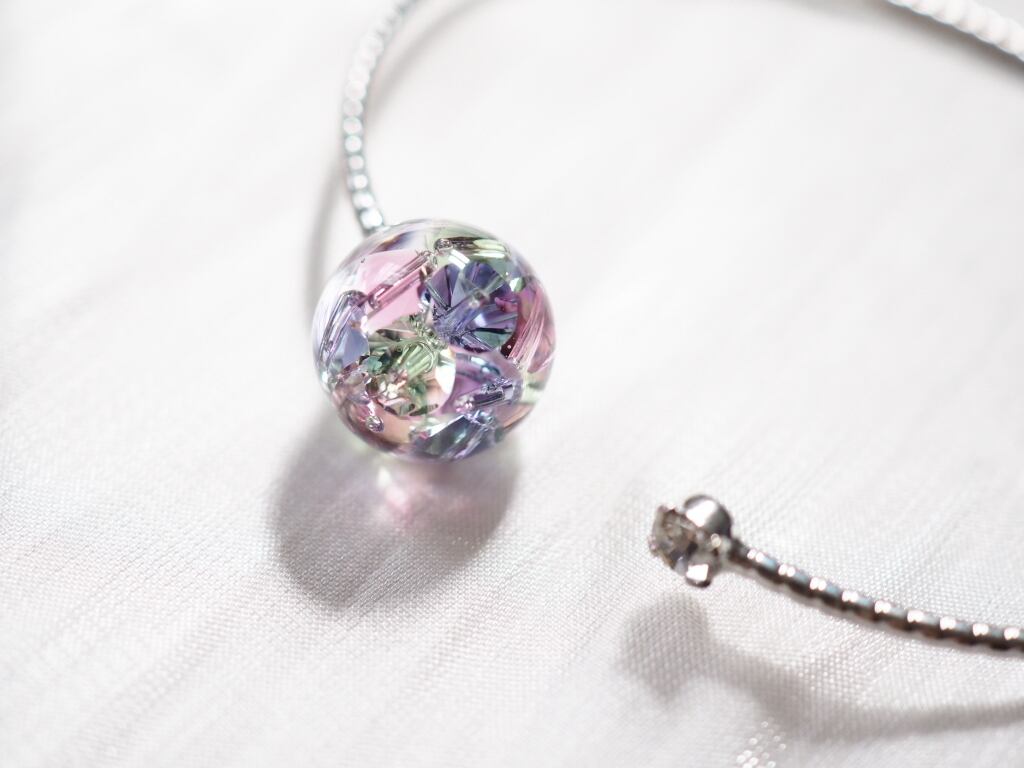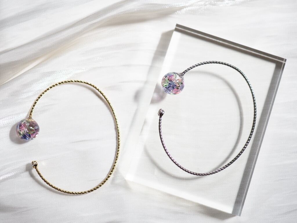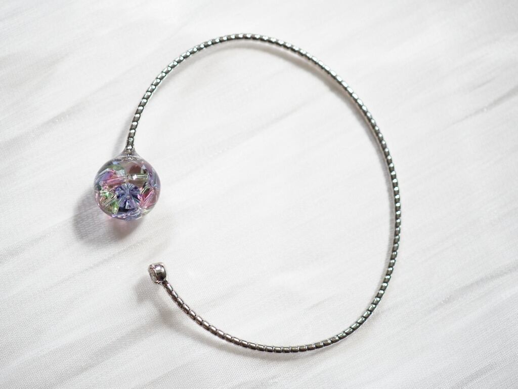 澄み渡る樹脂ドームに高級クリスタルガラスを閉じ込めた、上質なハンドメイドバングル。