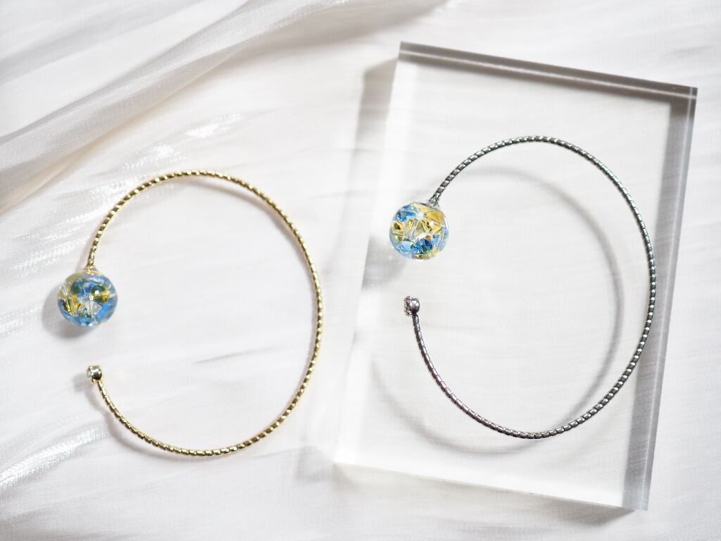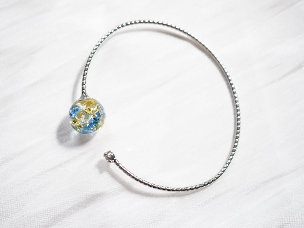 澄み渡る樹脂ドームに高級クリスタルガラスを閉じ込めた、上質なハンドメイドバングル。