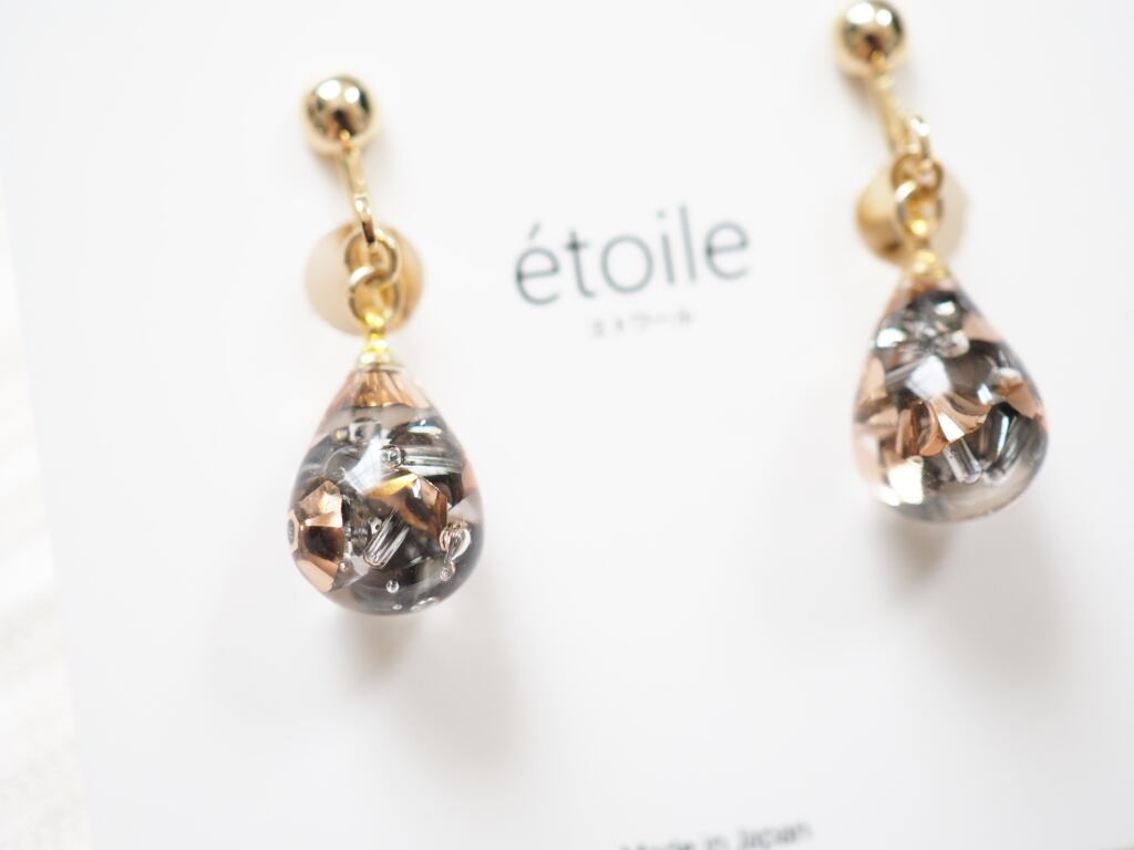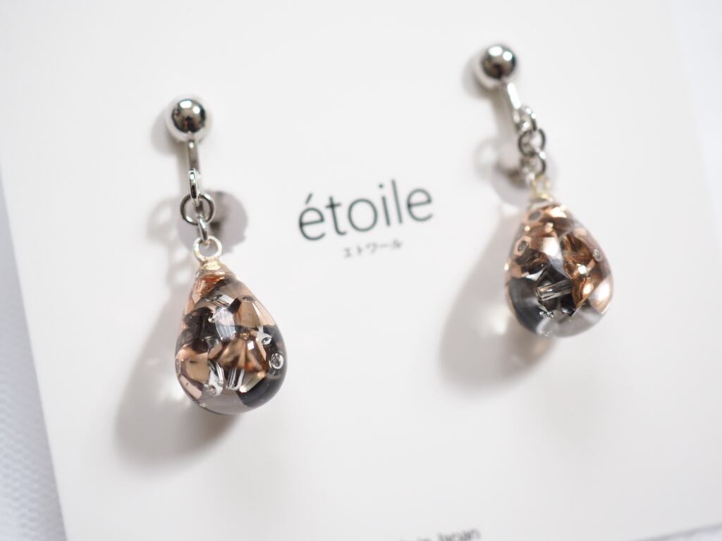 透明感あふれるしずく型に、高級クリスタルガラスを封じ込めた、気品漂うハンドメイドピアス/イヤリング。