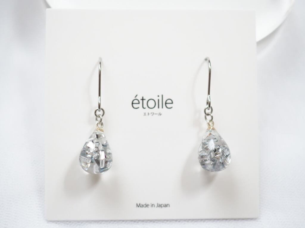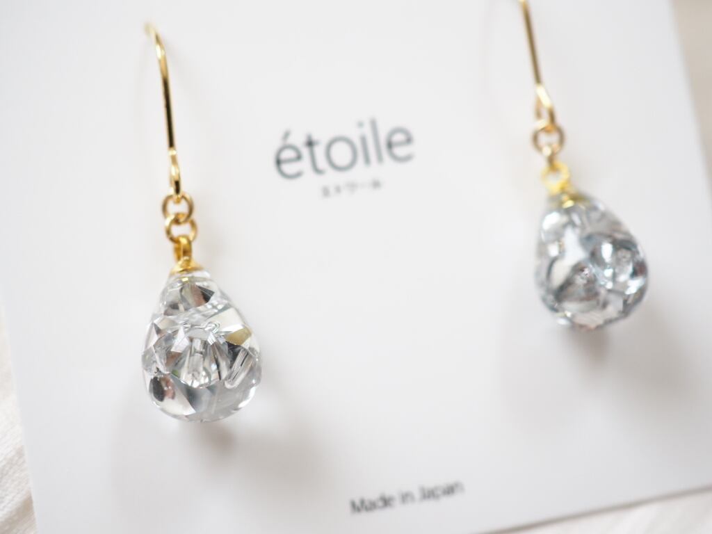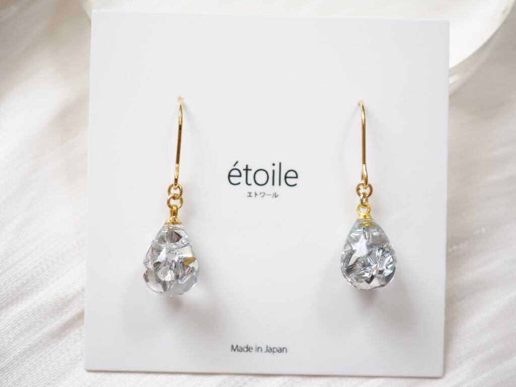 透明感あふれるしずく型に、高級クリスタルガラスを封じ込めた、気品漂うハンドメイドピアス/イヤリング。