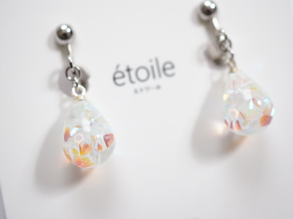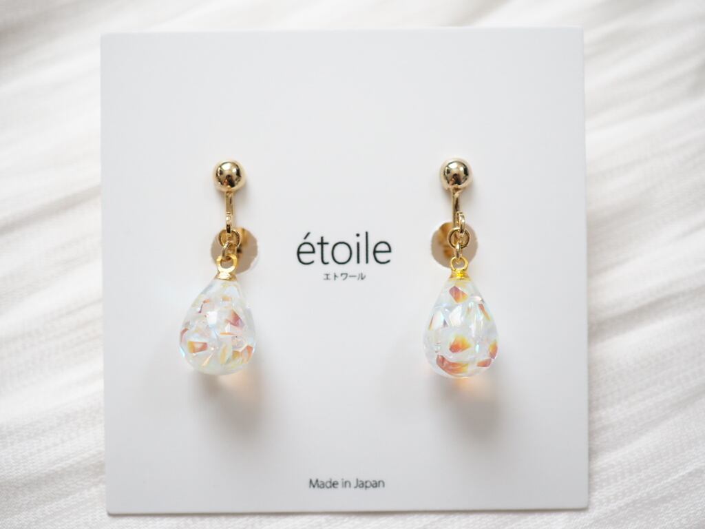 透明感あふれるしずく型に、高級クリスタルガラスを封じ込めた、気品漂うハンドメイドピアス/イヤリング。