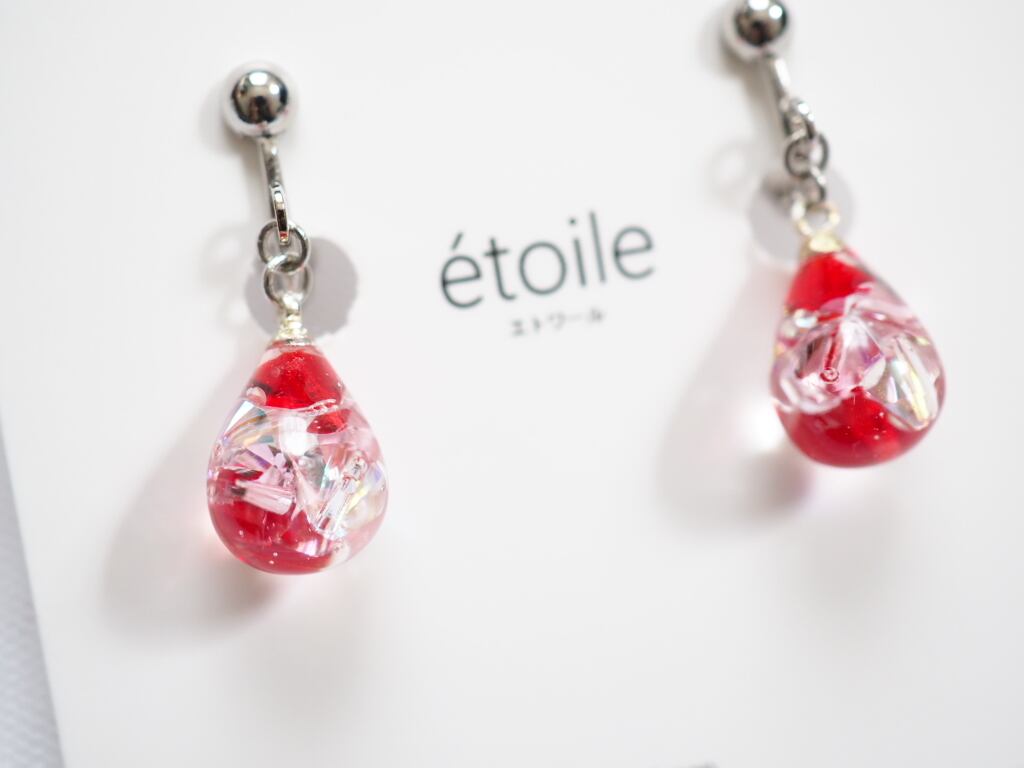透明感あふれるしずく型に、高級クリスタルガラスを封じ込めた、気品漂うハンドメイドピアス/イヤリング。