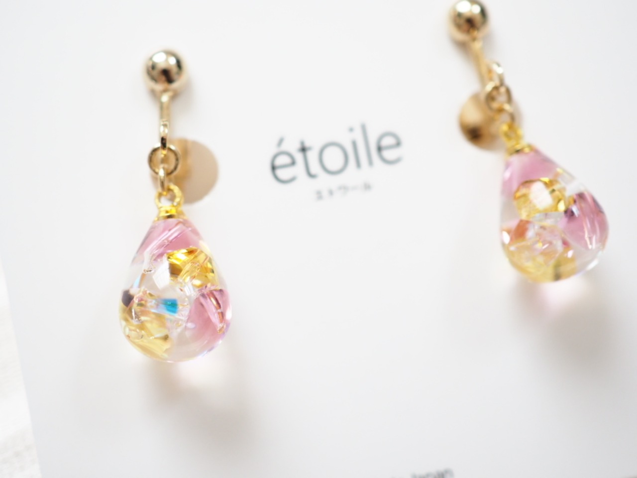 透明感あふれるしずく型に、高級クリスタルガラスを封じ込めた、気品漂うハンドメイドピアス/イヤリング。