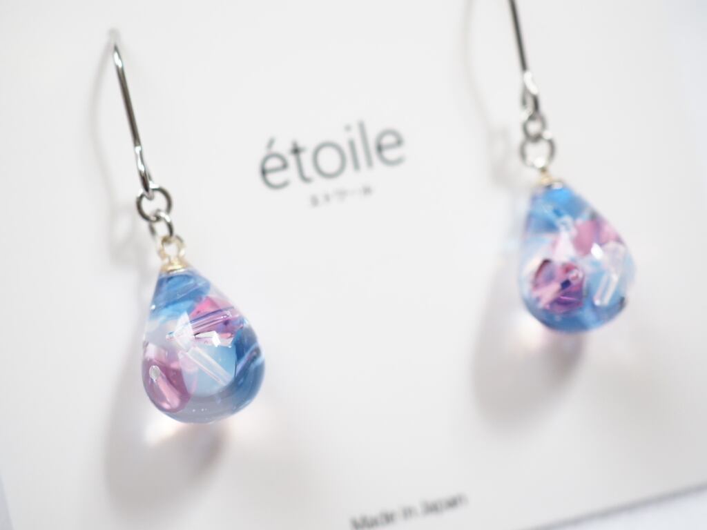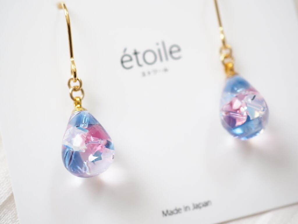 透明感あふれるしずく型に、高級クリスタルガラスを封じ込めた、気品漂うハンドメイドピアス/イヤリング。