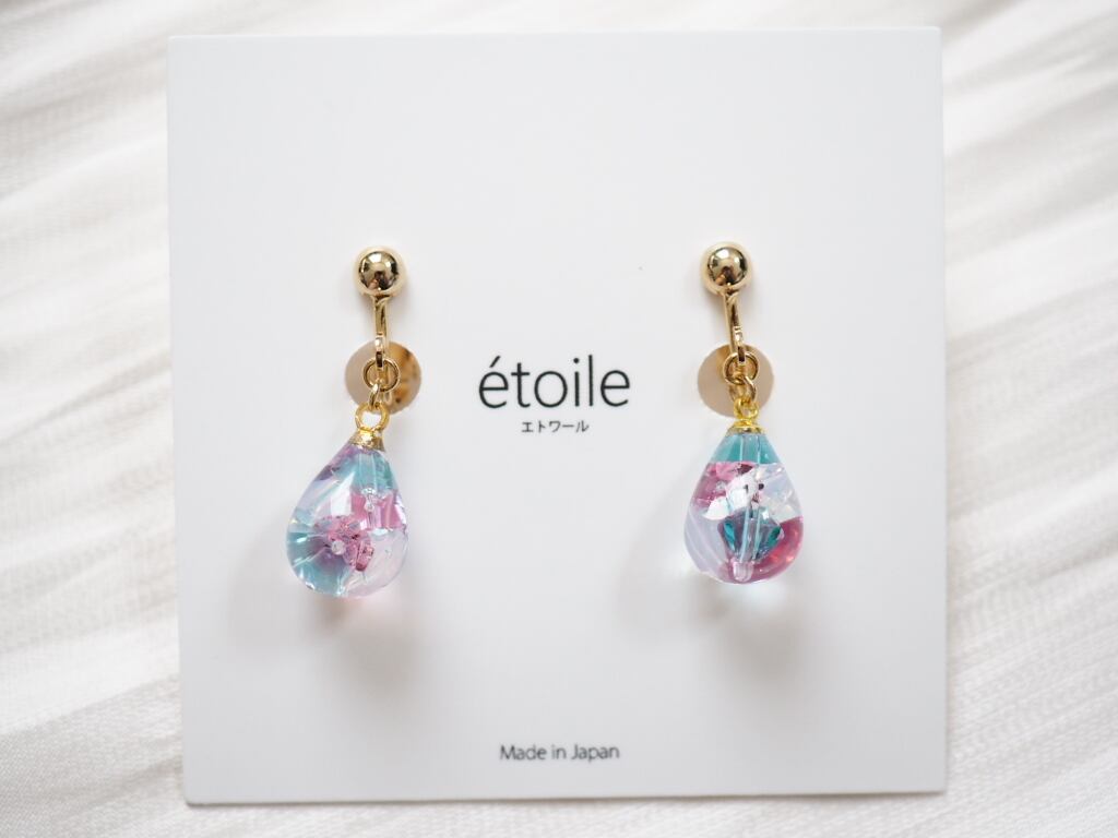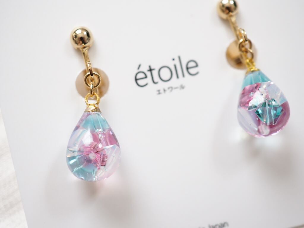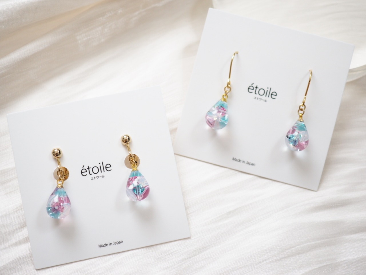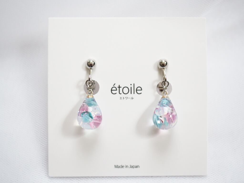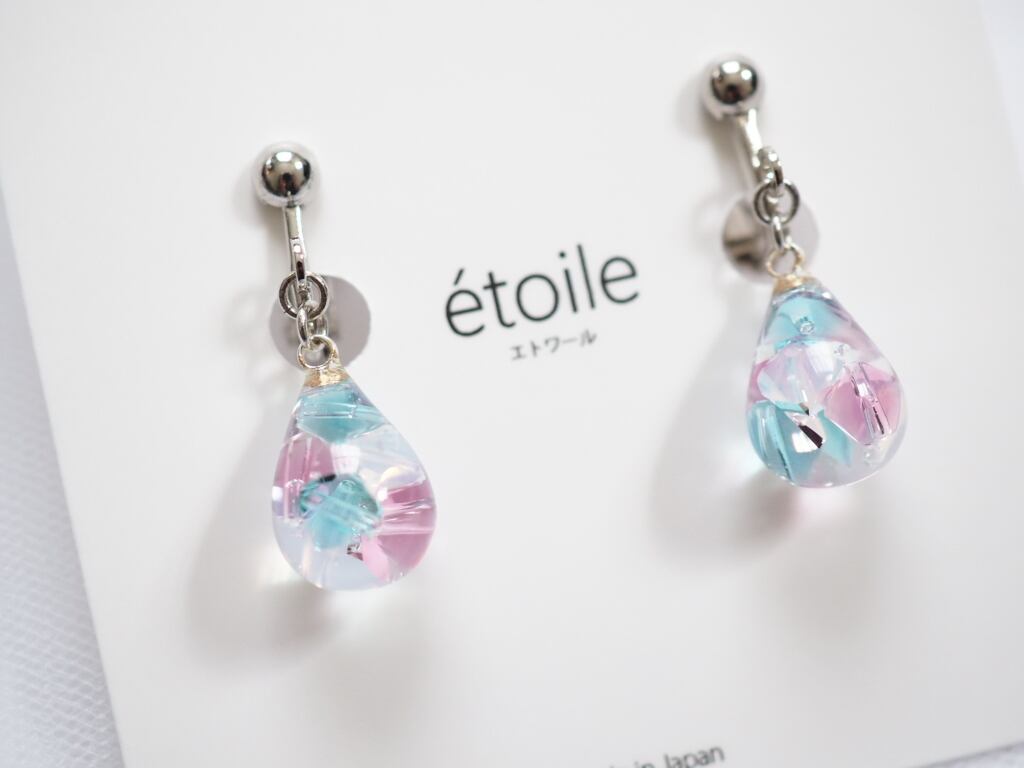 透明感あふれるしずく型に、高級クリスタルガラスを封じ込めた、気品漂うハンドメイドピアス/イヤリング。