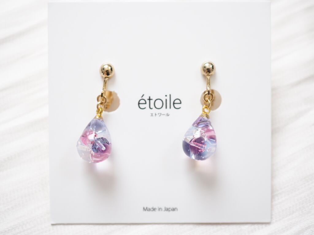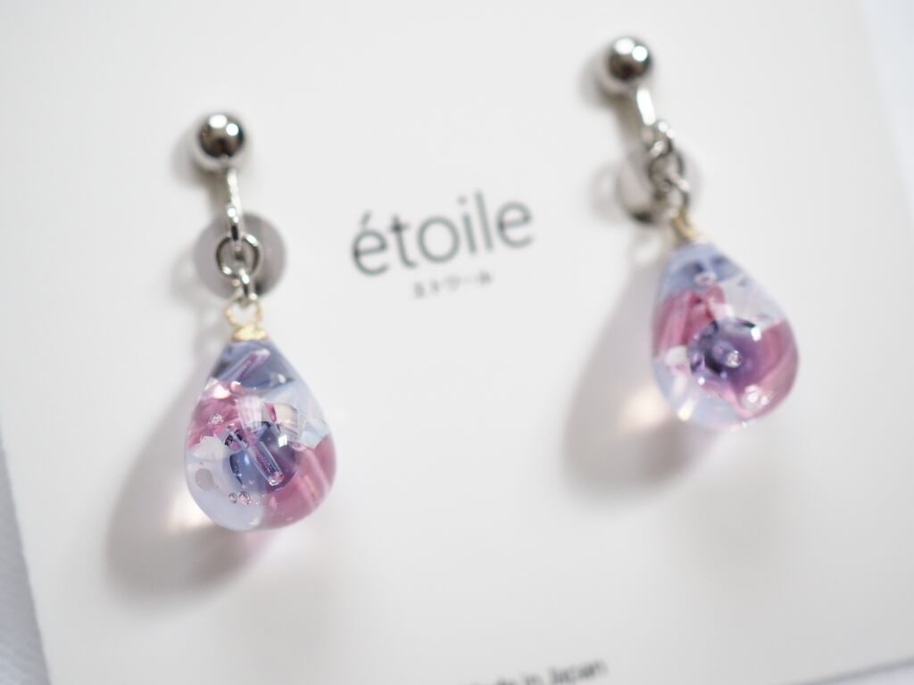 透明感あふれるしずく型に、高級クリスタルガラスを封じ込めた、気品漂うハンドメイドピアス/イヤリング。