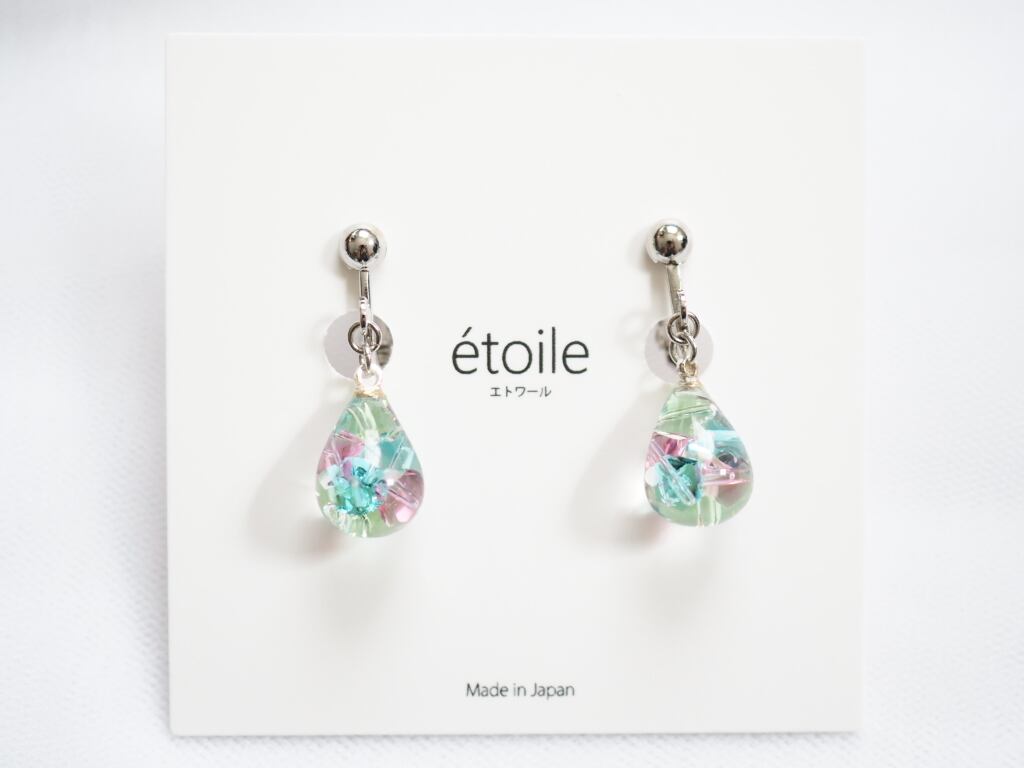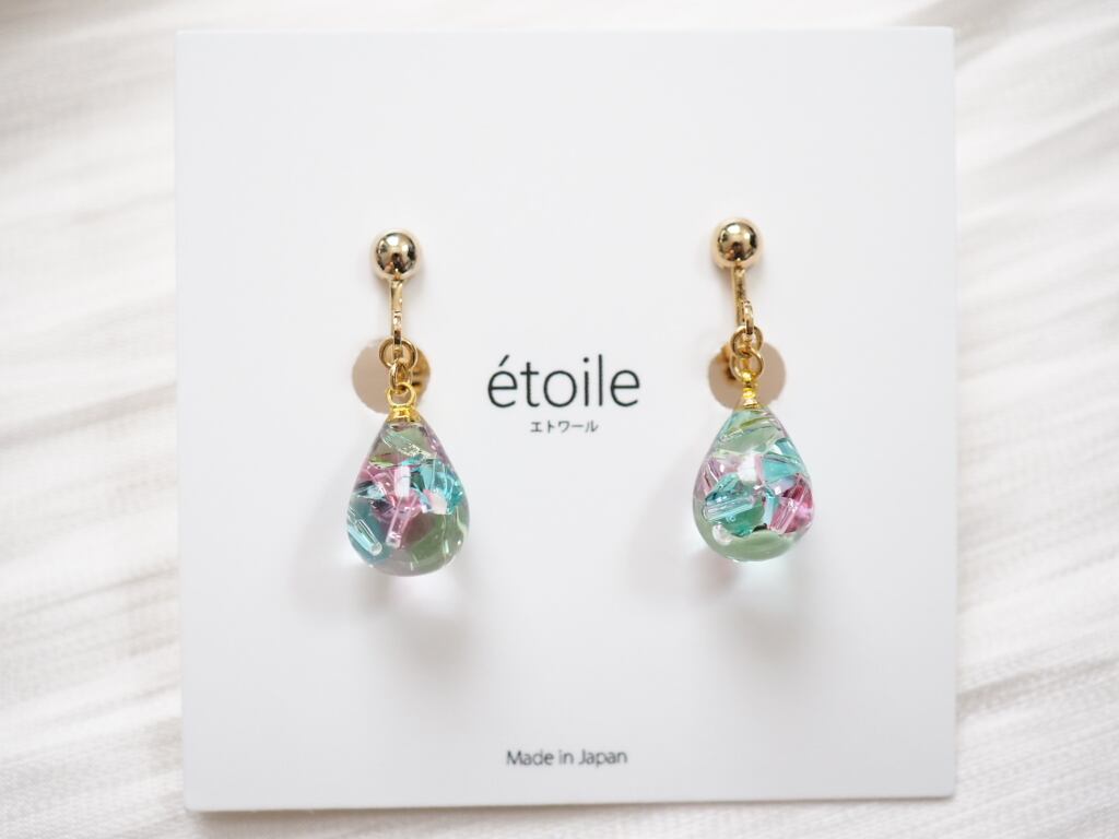 透明感あふれるしずく型に、高級クリスタルガラスを封じ込めた、気品漂うハンドメイドピアス/イヤリング。