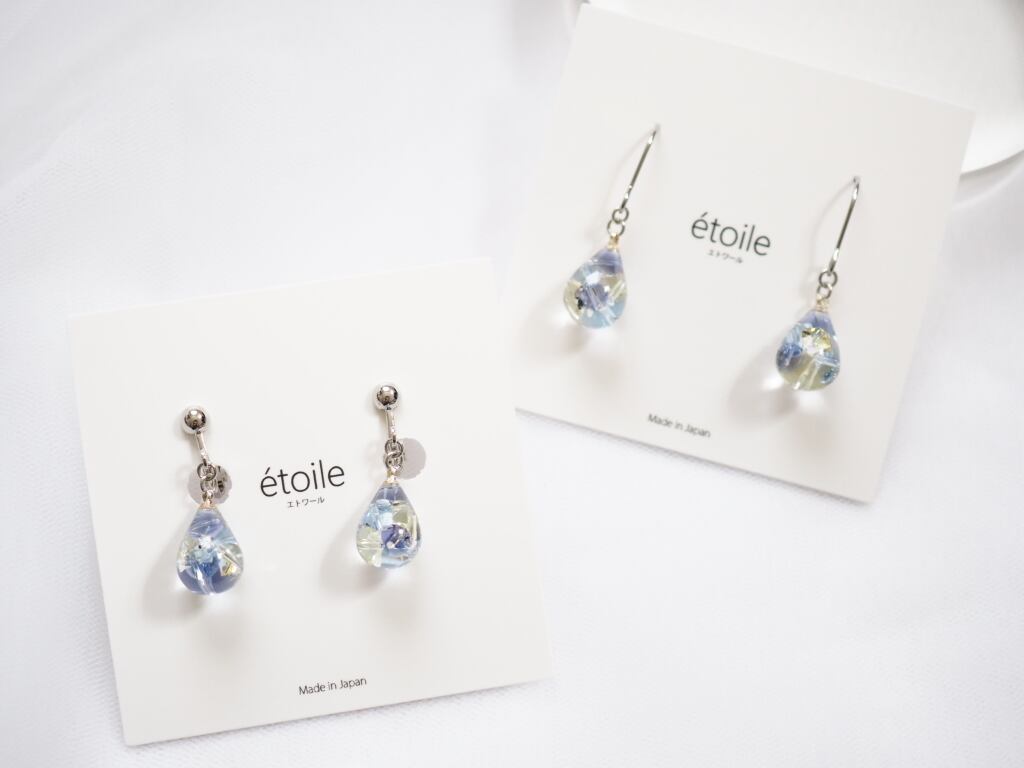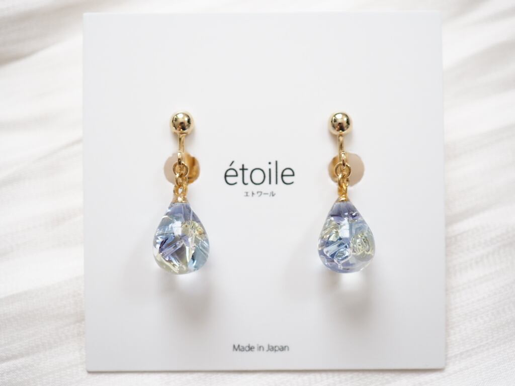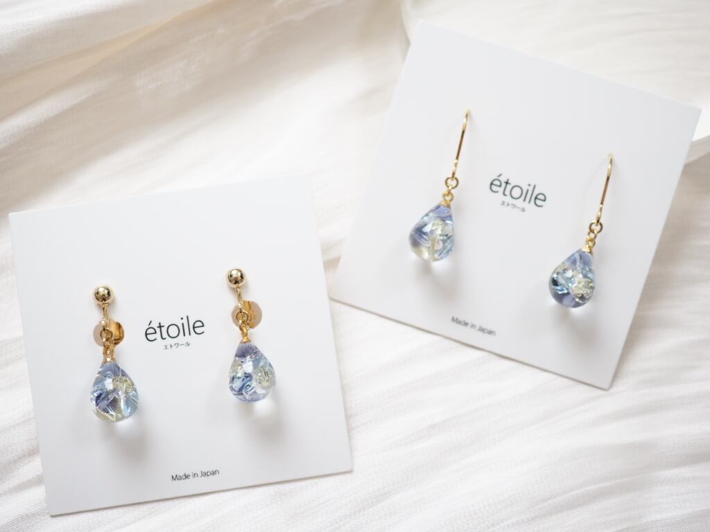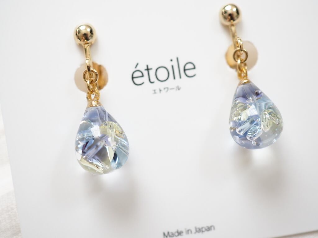 透明感あふれるしずく型に、高級クリスタルガラスを封じ込めた、気品漂うハンドメイドピアス/イヤリング。