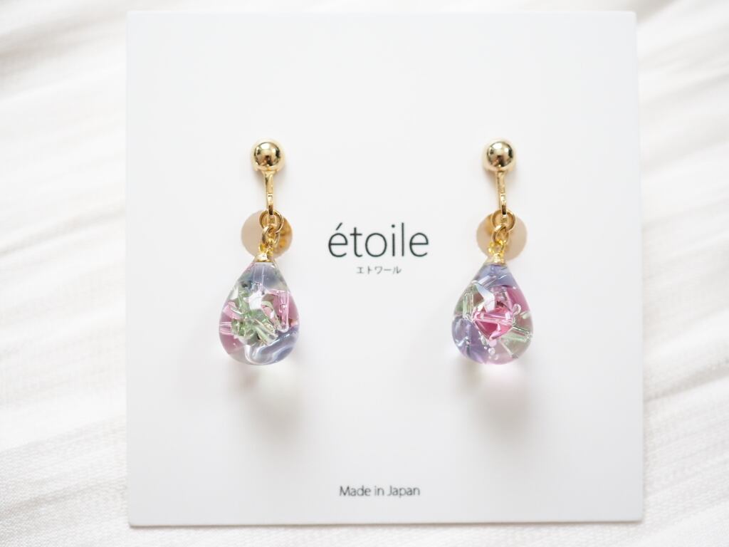透明感あふれるしずく型に、高級クリスタルガラスを封じ込めた、気品漂うハンドメイドピアス/イヤリング。
