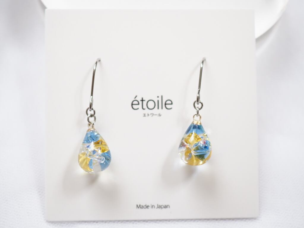 透明感あふれるしずく型に、高級クリスタルガラスを封じ込めた、気品漂うハンドメイドピアス/イヤリング。