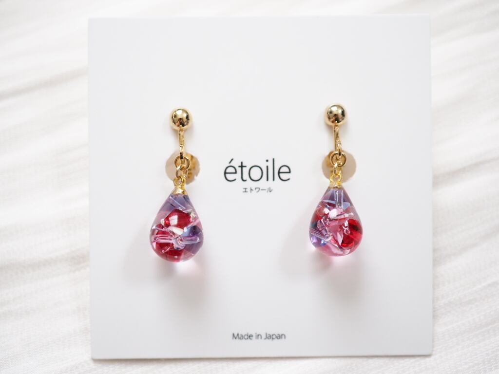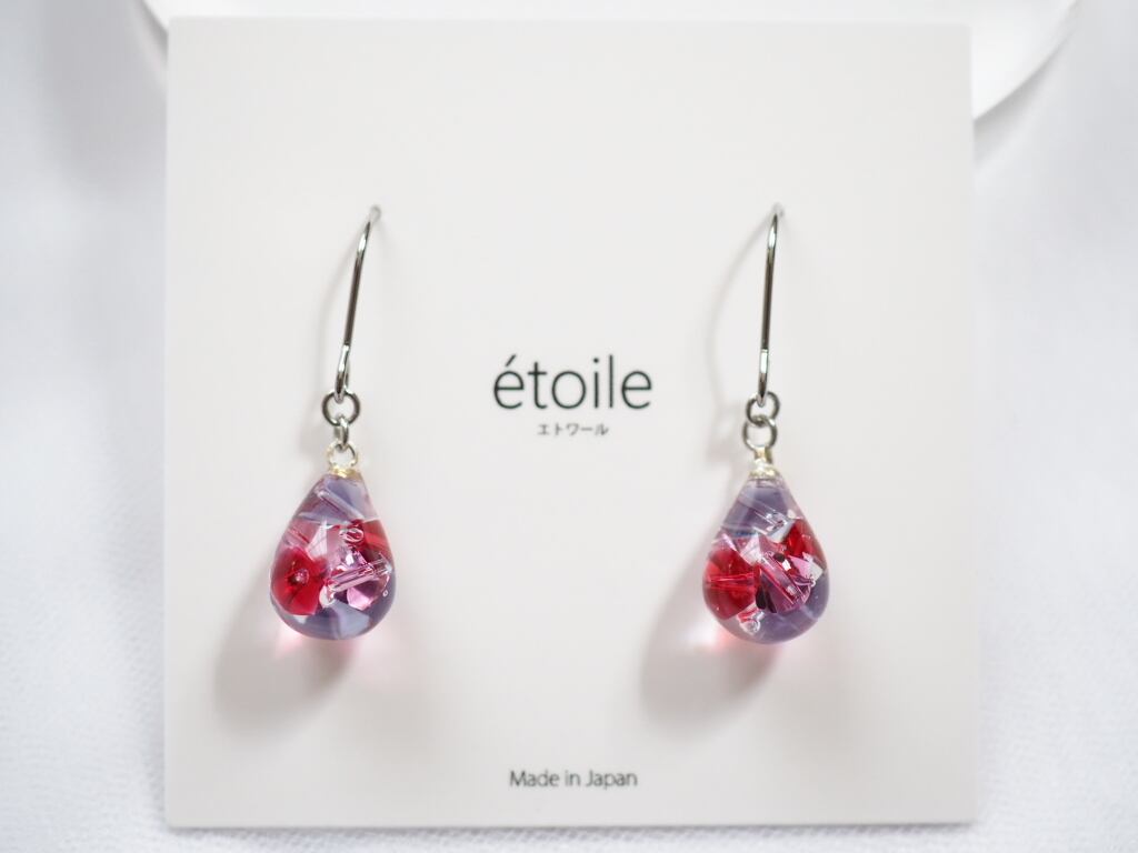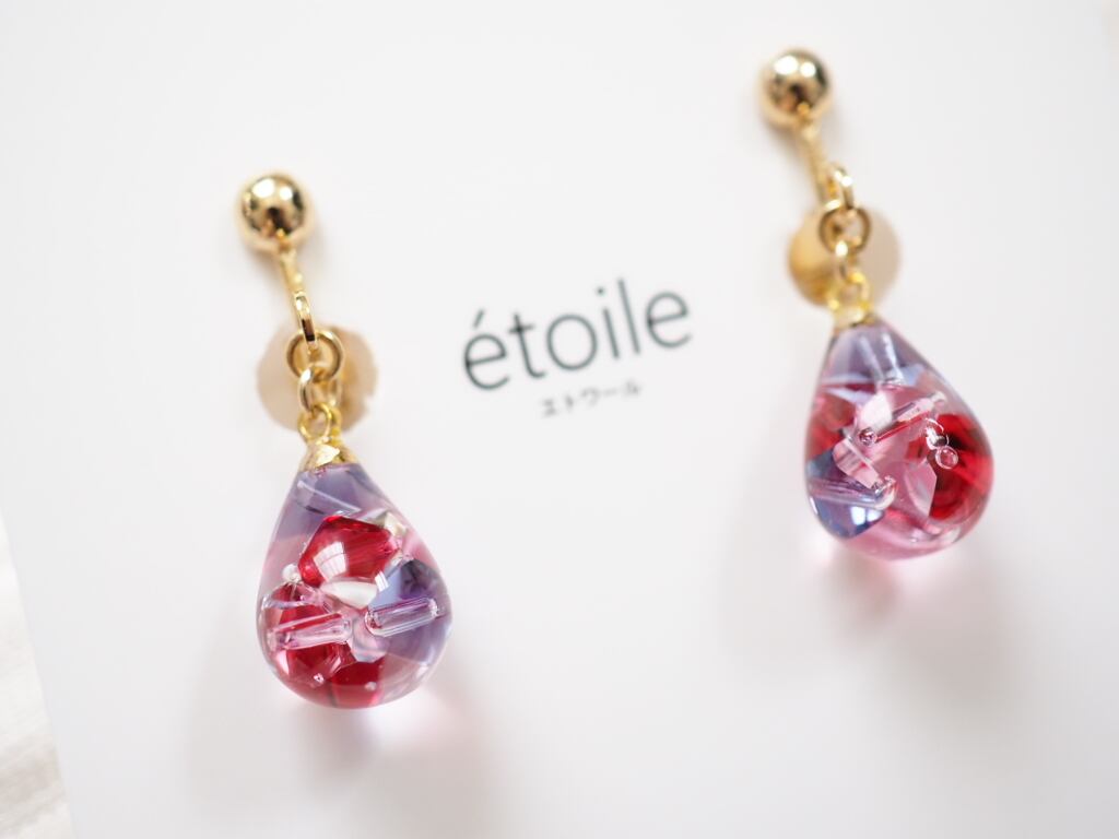 透明感あふれるしずく型に、高級クリスタルガラスを封じ込めた、気品漂うハンドメイドピアス/イヤリング。