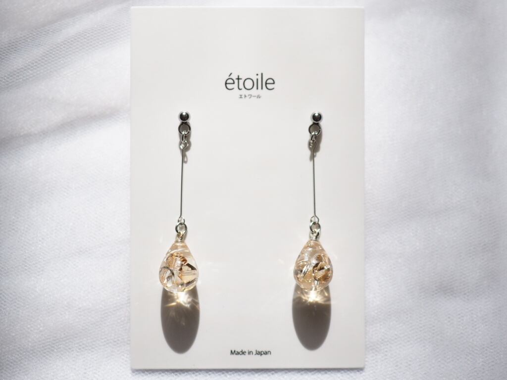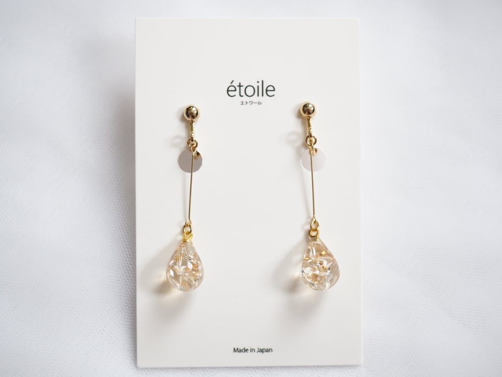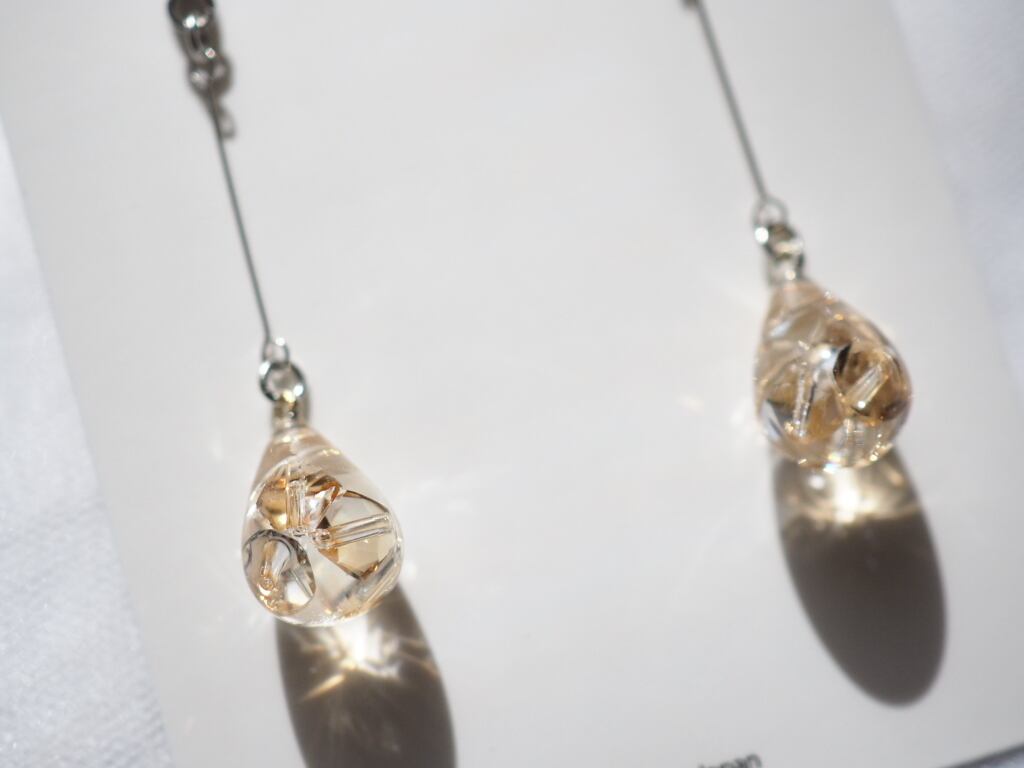 高級クリスタルガラスを閉じ込めた、澄んだしずく型をあしらった、ハンドメイドならではのロングデザインピアス/イヤリング。
