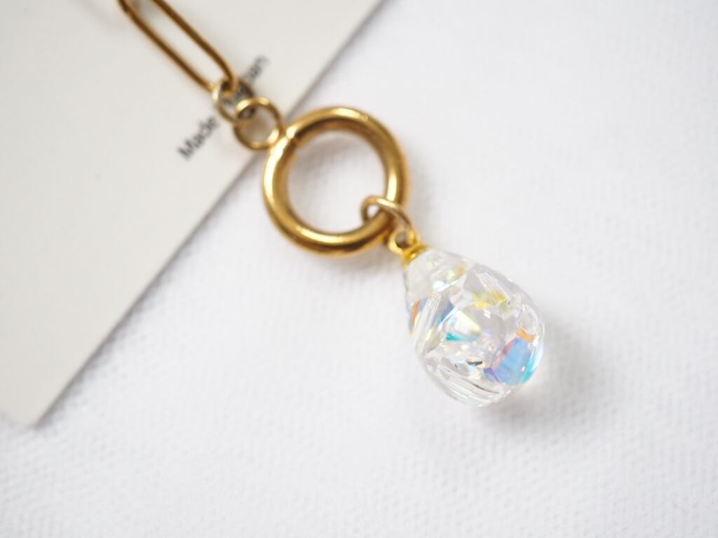 しずく型に高級クリスタルガラスを閉じ込めた、洗練されたハンドメイドネックレス。