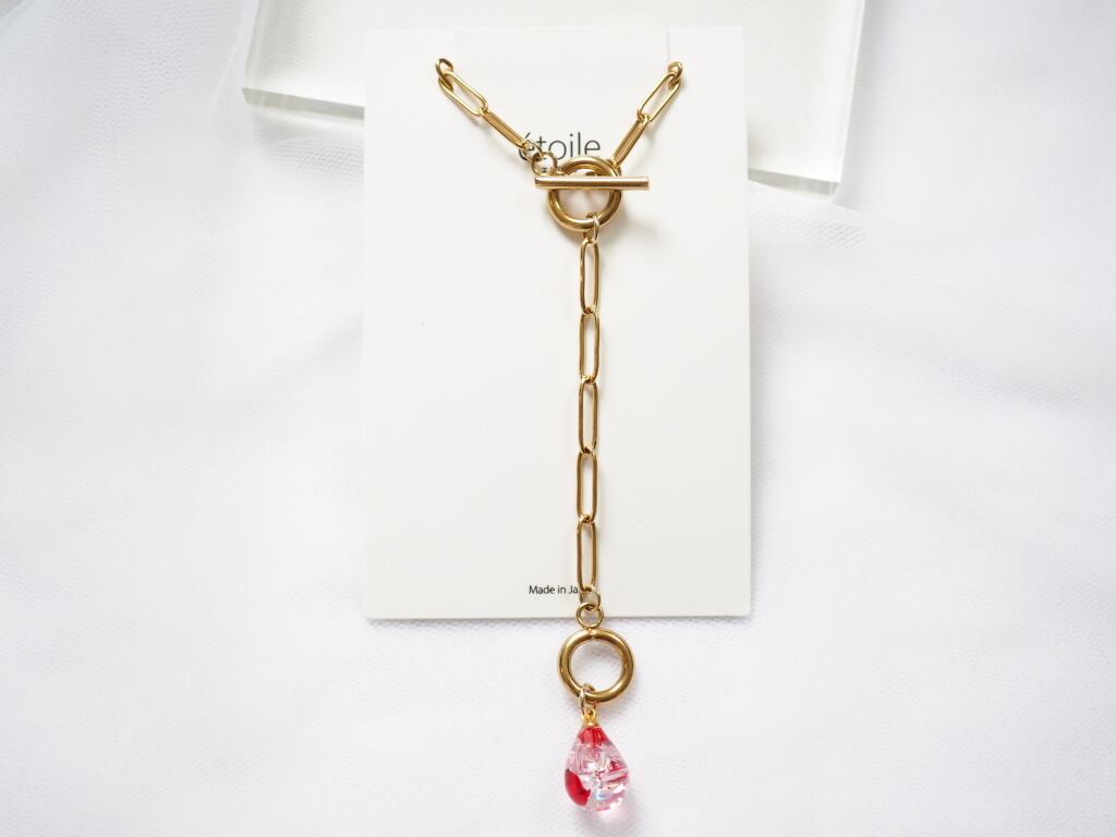 しずく型に高級クリスタルガラスを閉じ込めた、洗練されたハンドメイドネックレス。