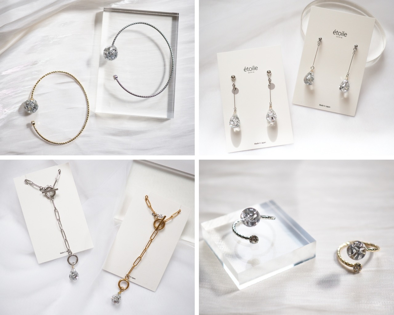 人気の高級クリスタルガラスを閉じ込めたシリーズから、ピアス/イヤリング・バングル・リング・ネックレスをまとめて楽しめるお得なセットが登場しました。