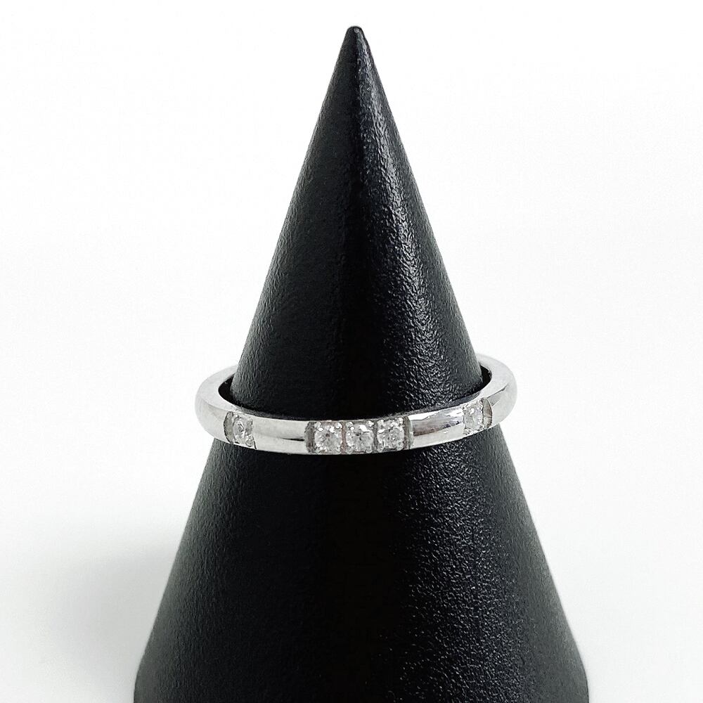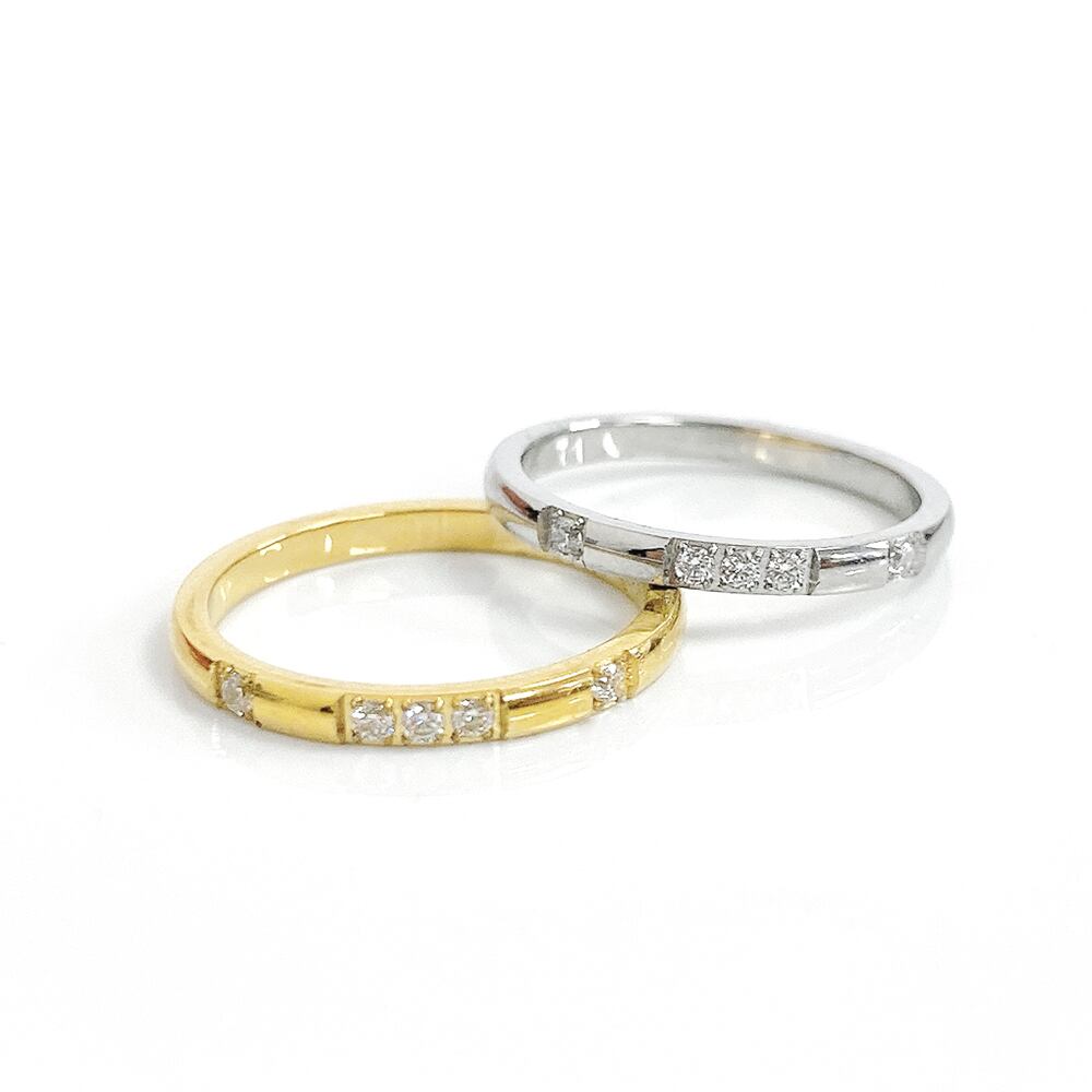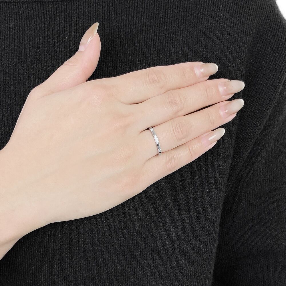 5石の無色透明のジルコニアストーンの輝きが、上品で洗練された雰囲気に格上げします。
