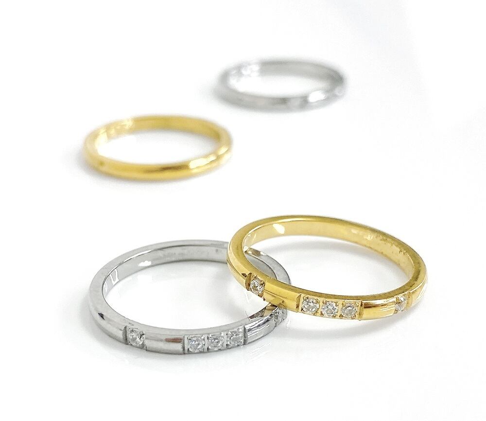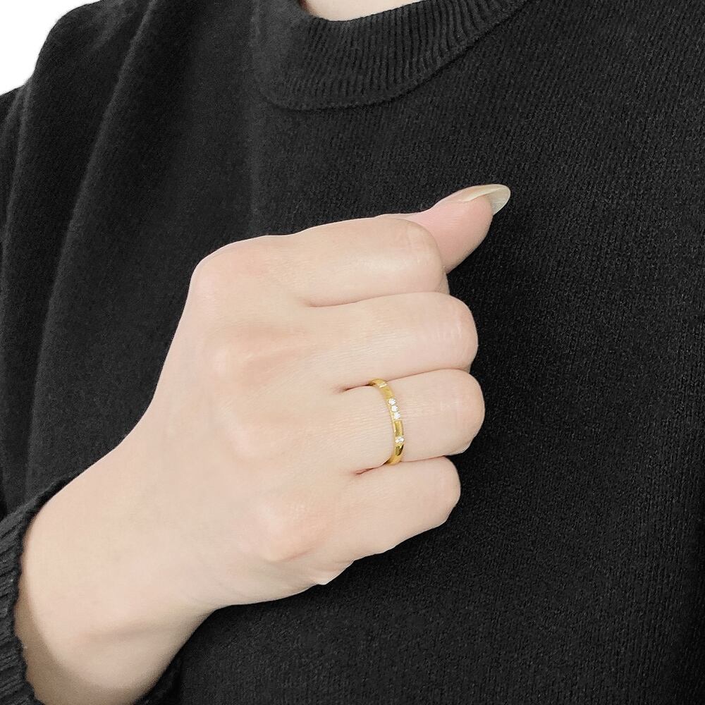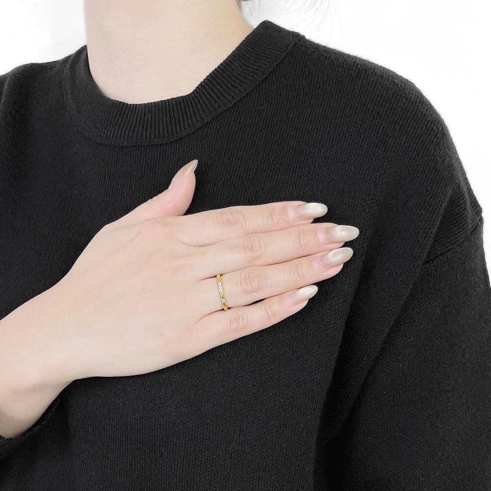 指元を優美に照らしてくれる、ステンレス製ジルコニアストーンリング。