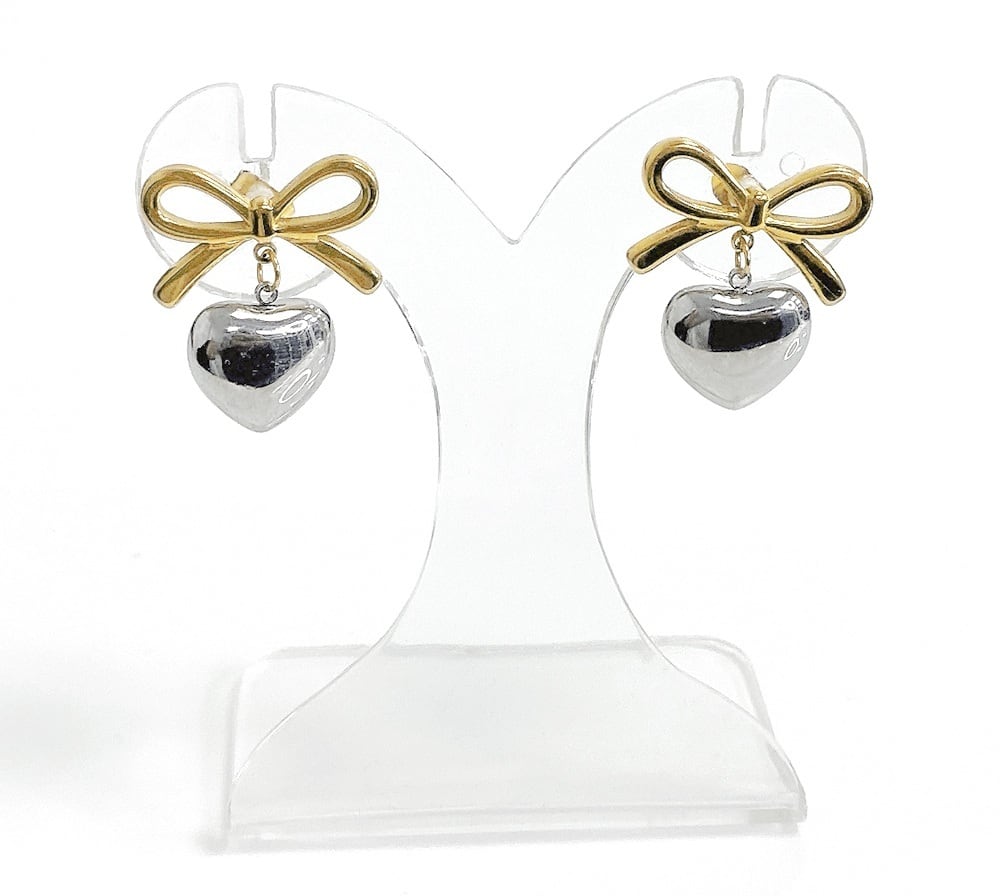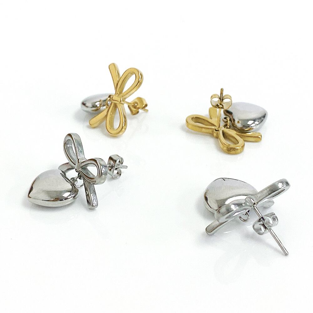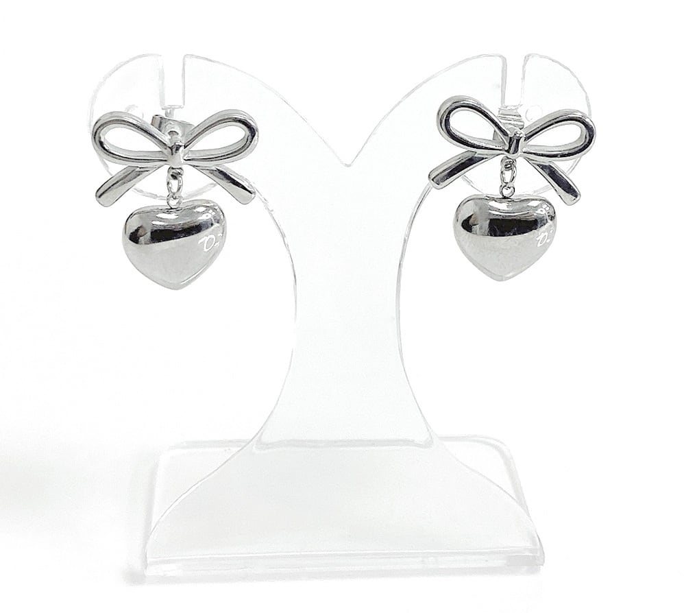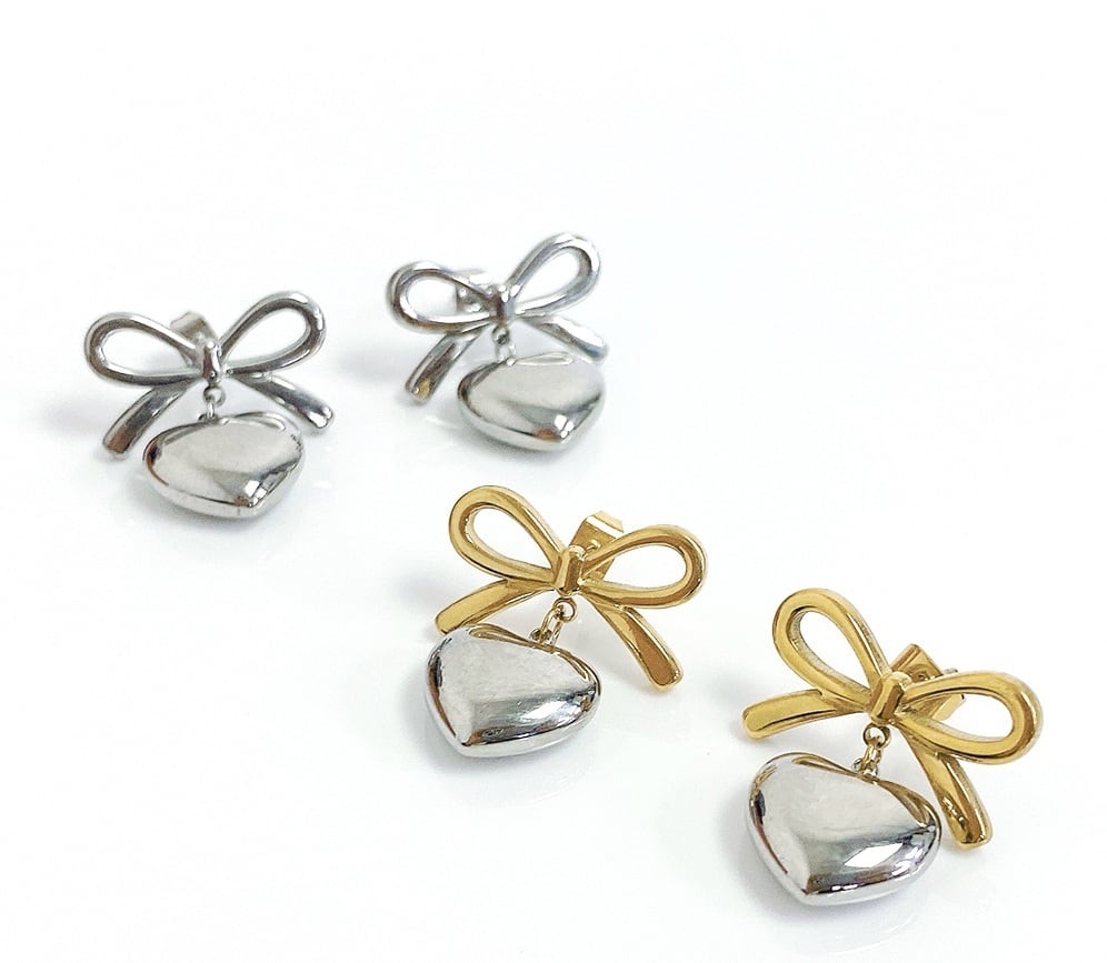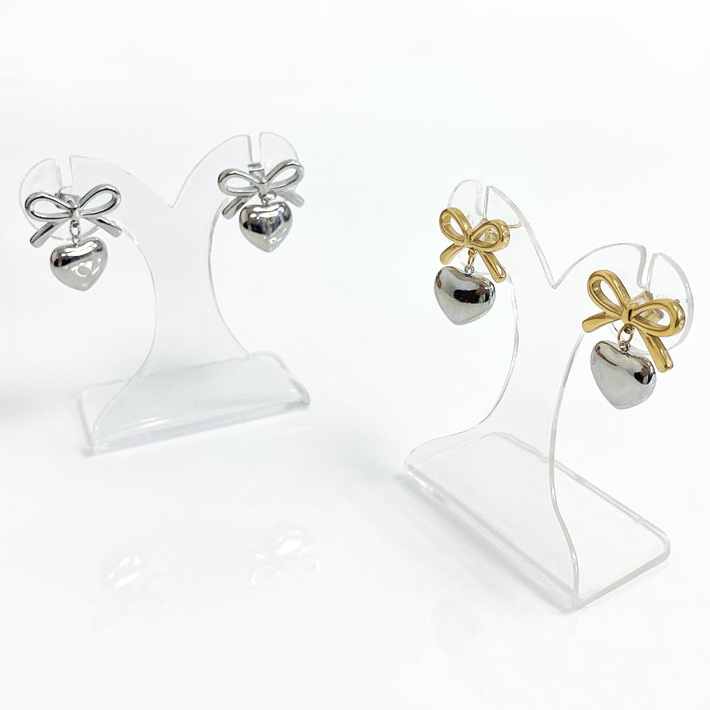上品で遊び心を感じられる、リボン&ハートピアス。