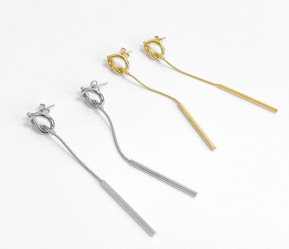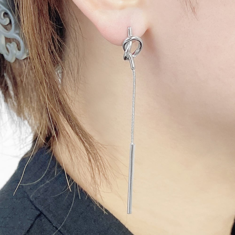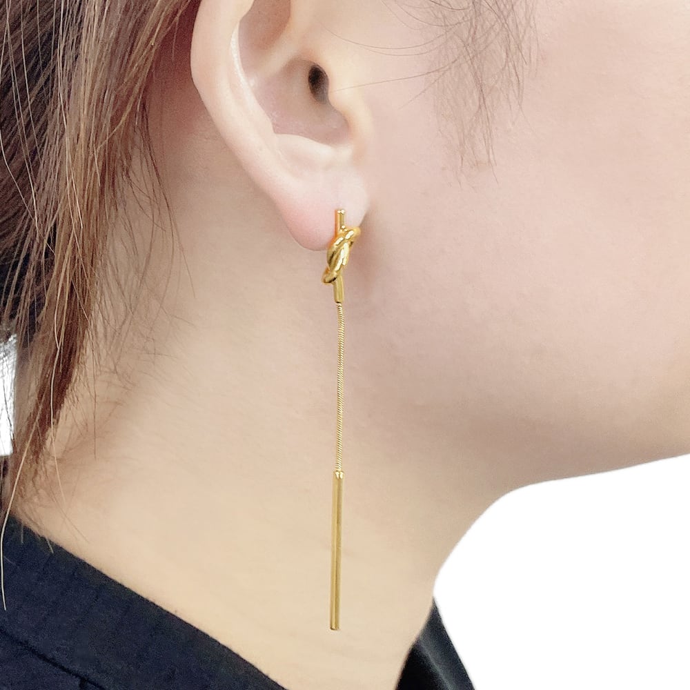 こなれた大人モードに格上げしてくれる、ノットラインチェーンピアス。