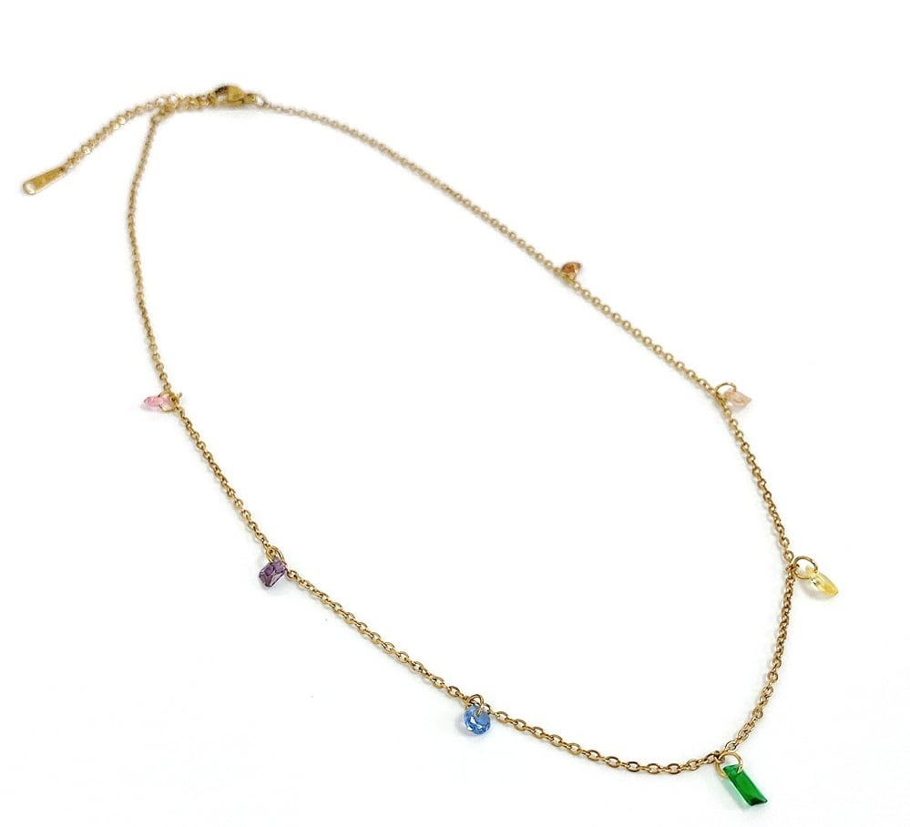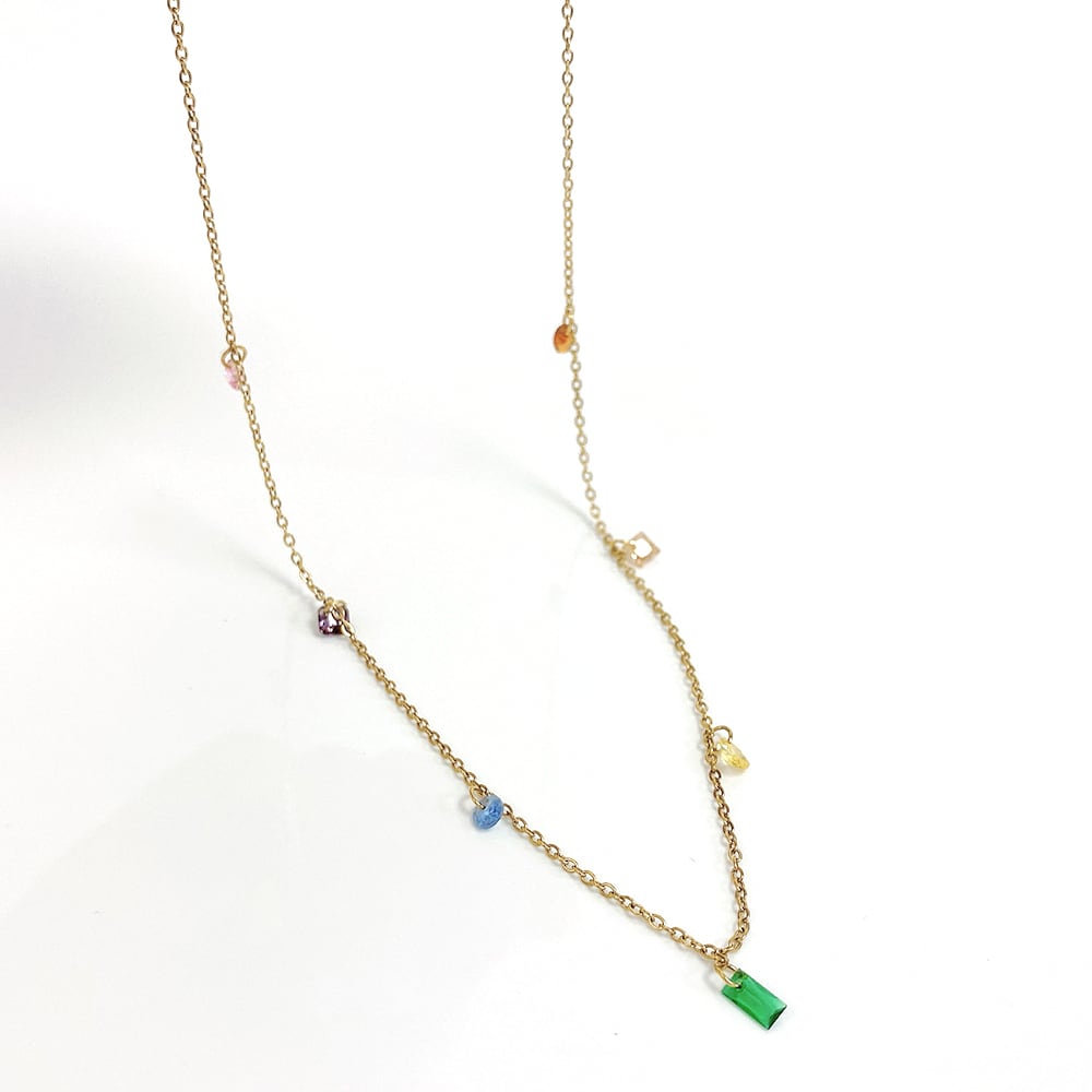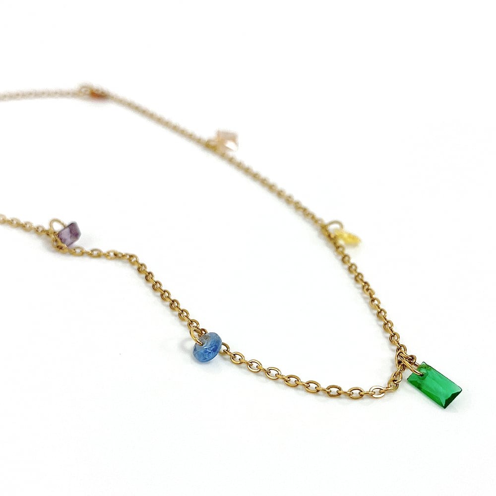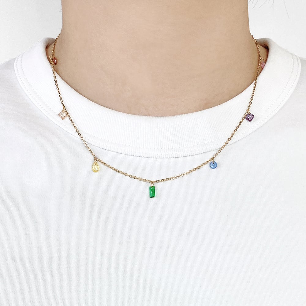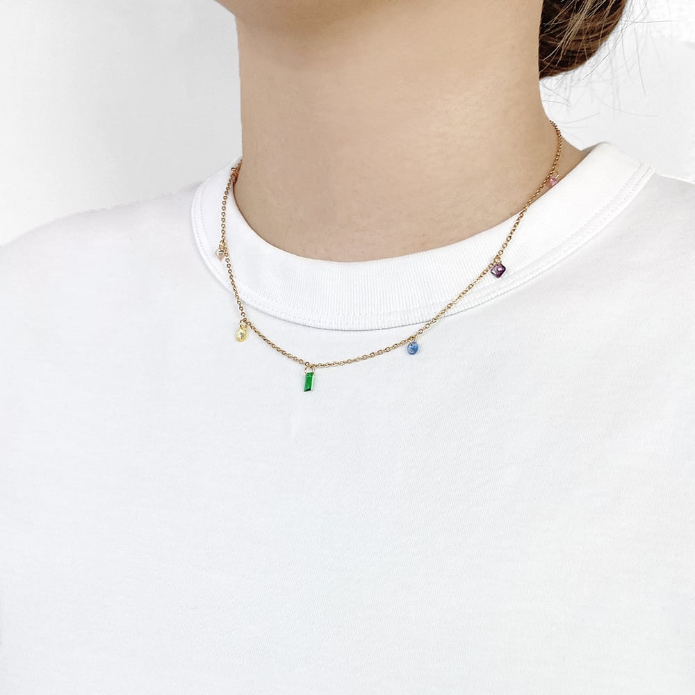 愛らしいデザインで透明感を感じられる、マルチカラーストーンネックレス。