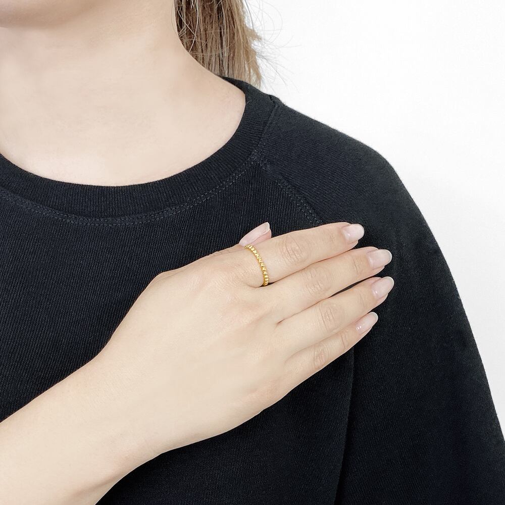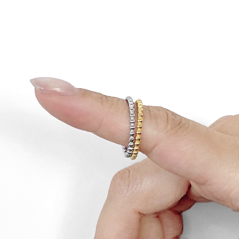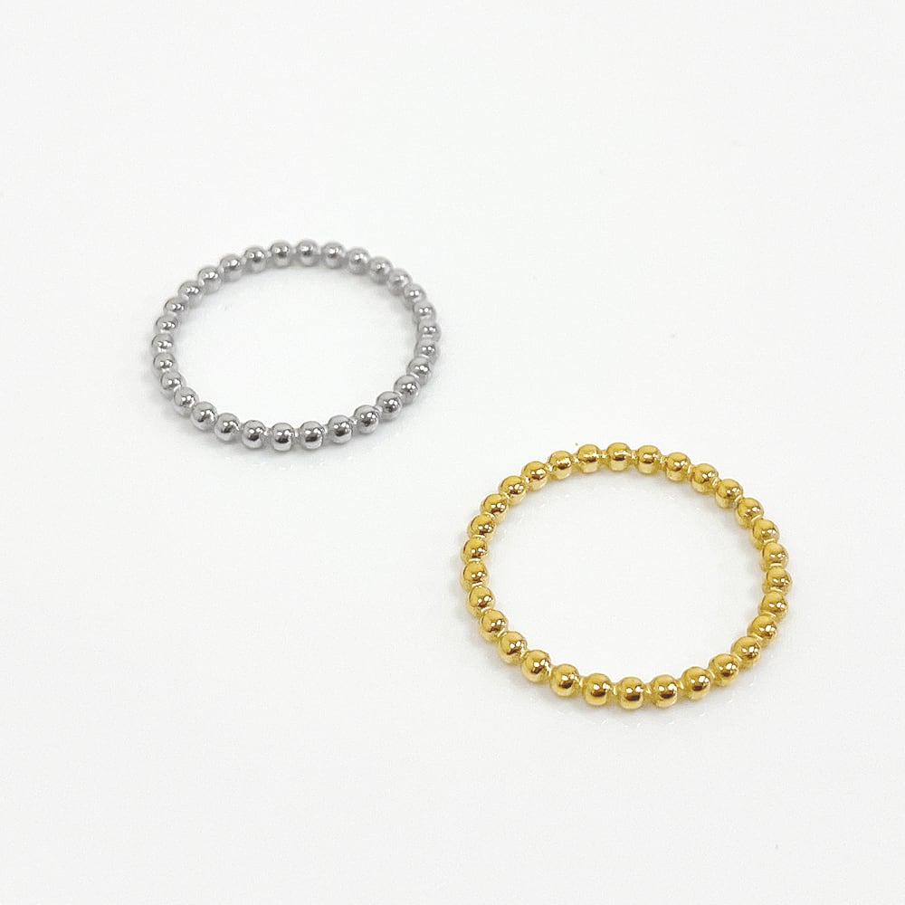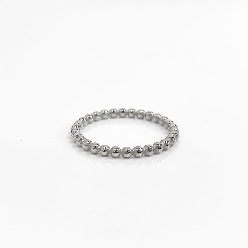 プレーンのミニメタルボールが連なった、ステンレス製のデザインリング。