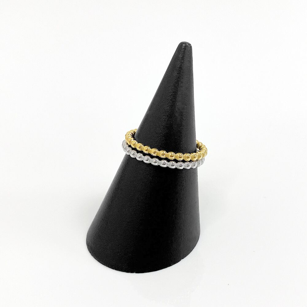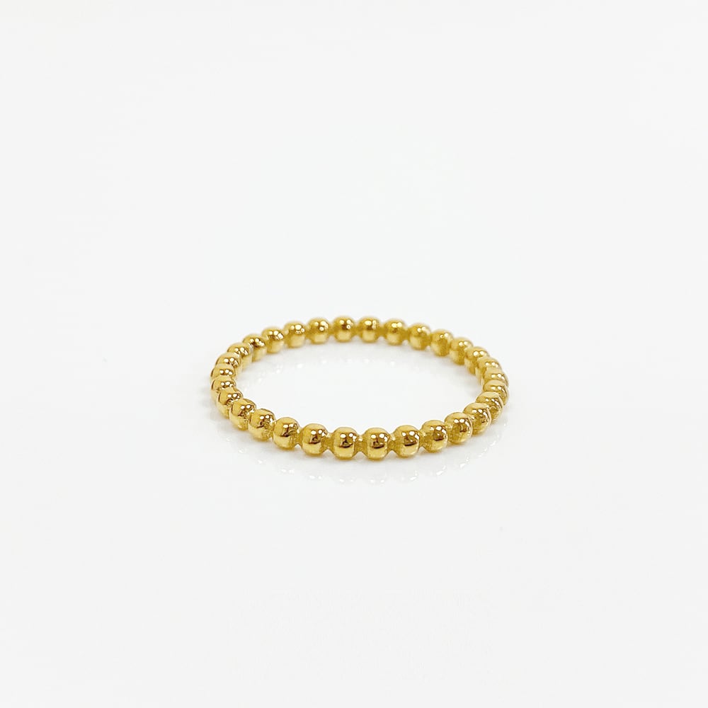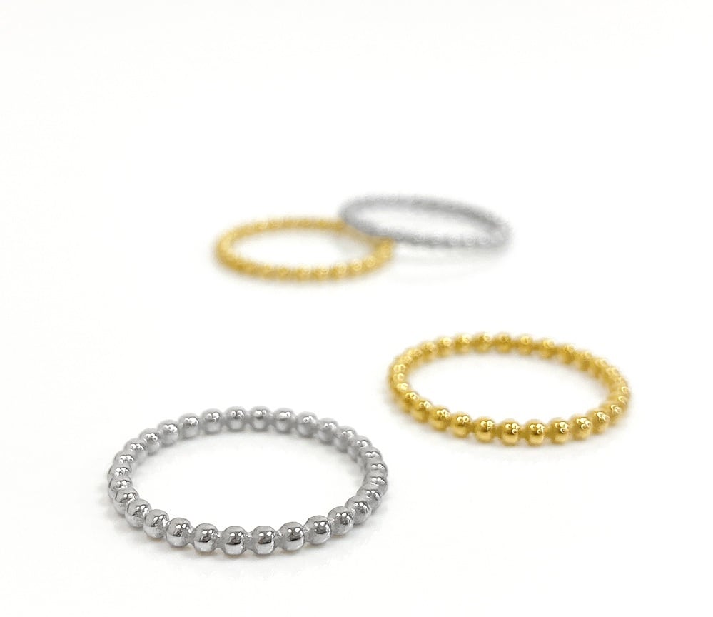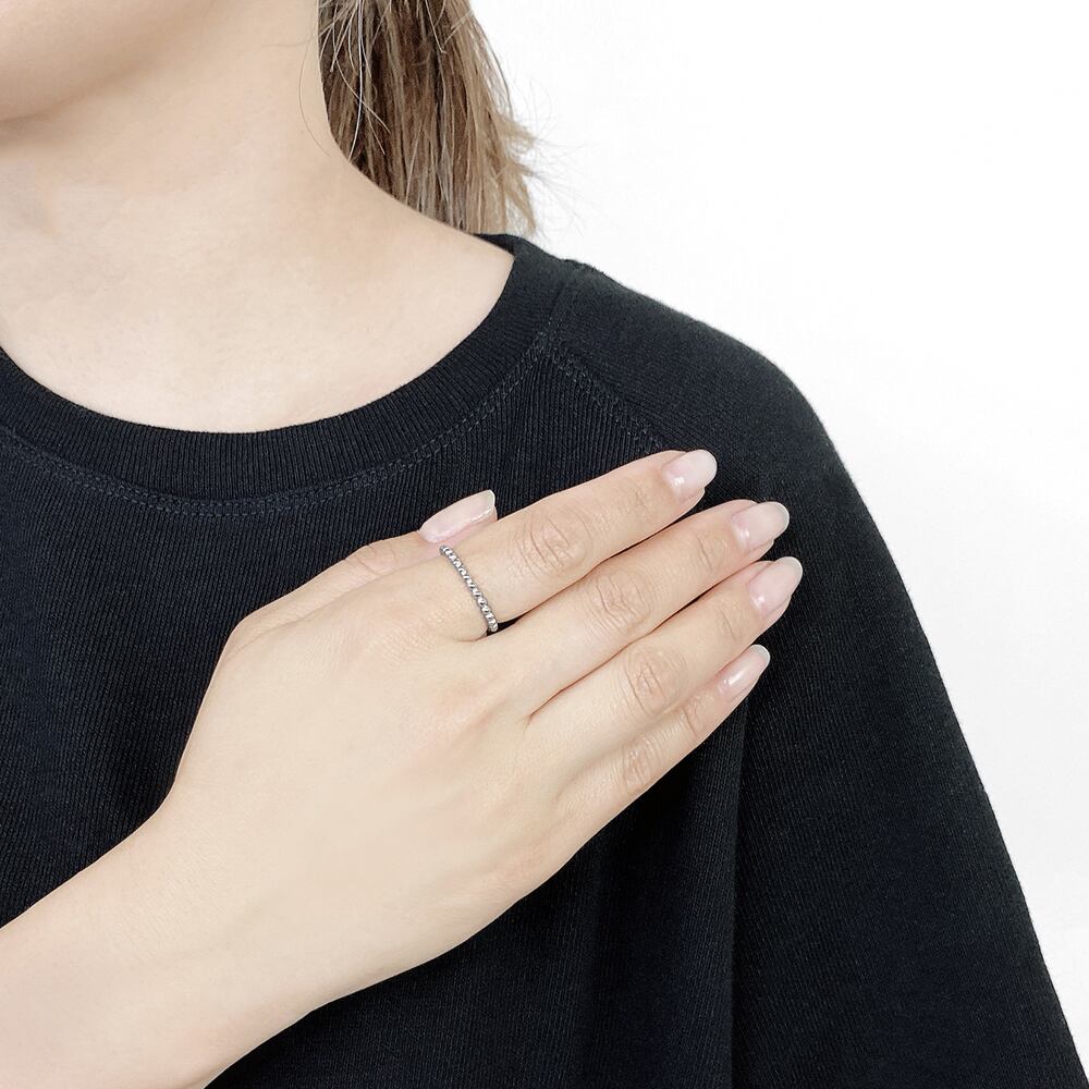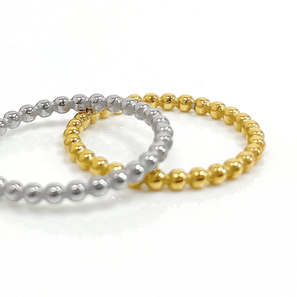プレーンのミニメタルボールが連なった、ステンレス製のデザインリング。