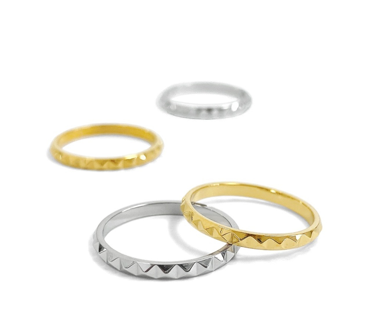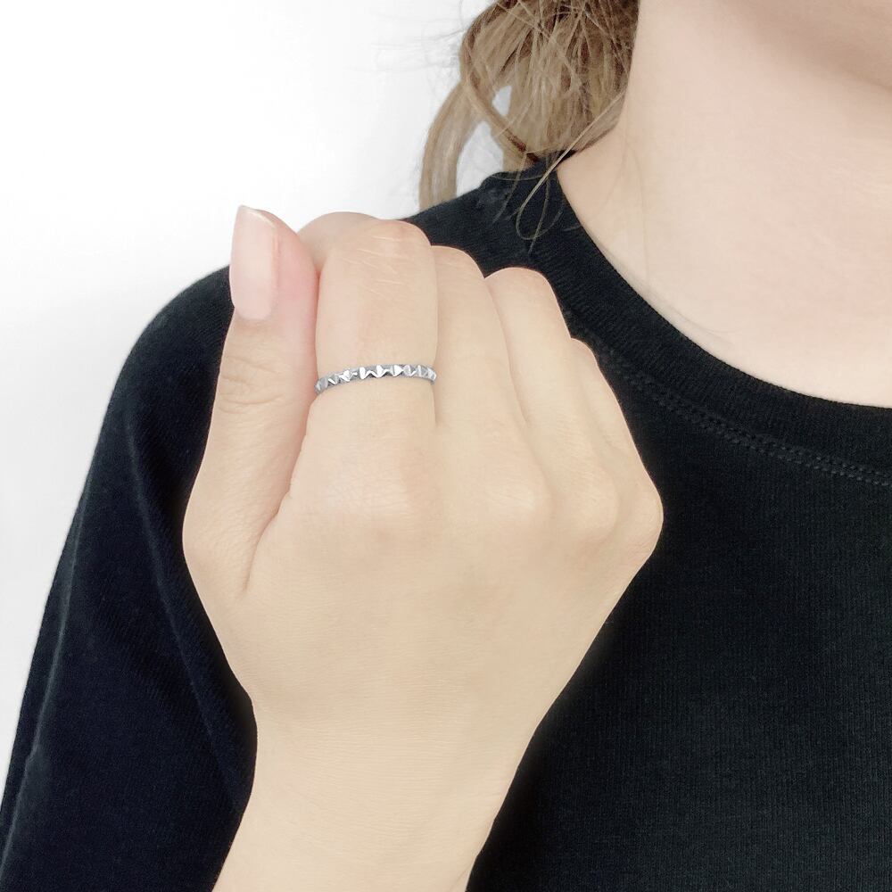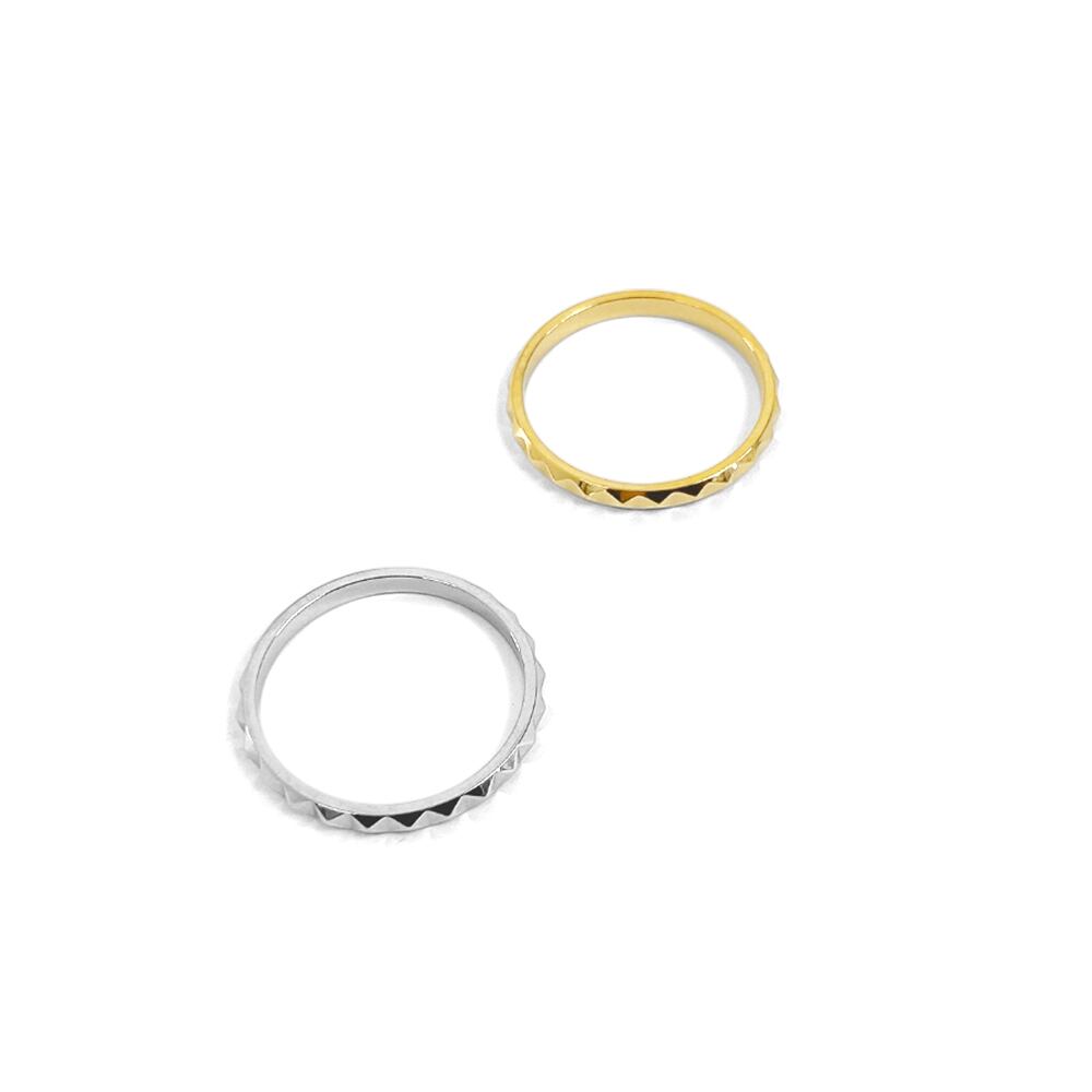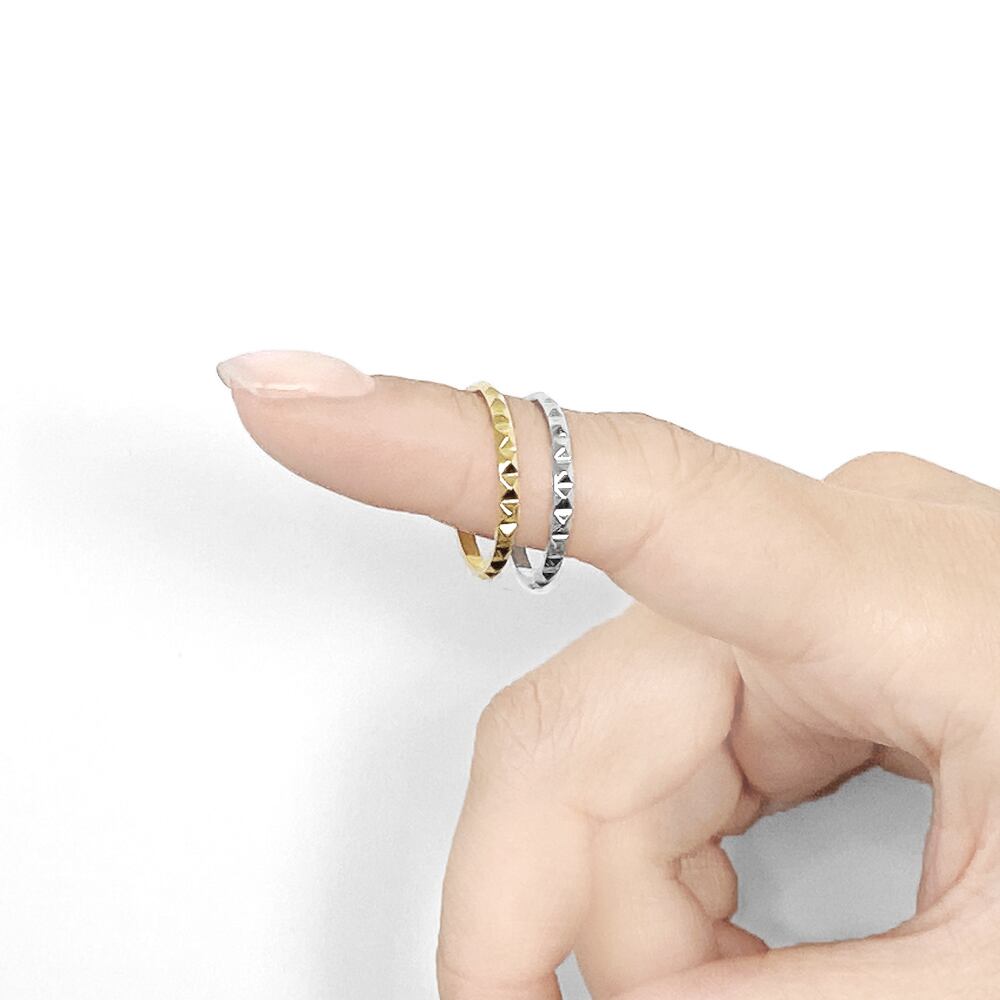 シンプルながら少しモードな雰囲気のスタッズデザインリング。