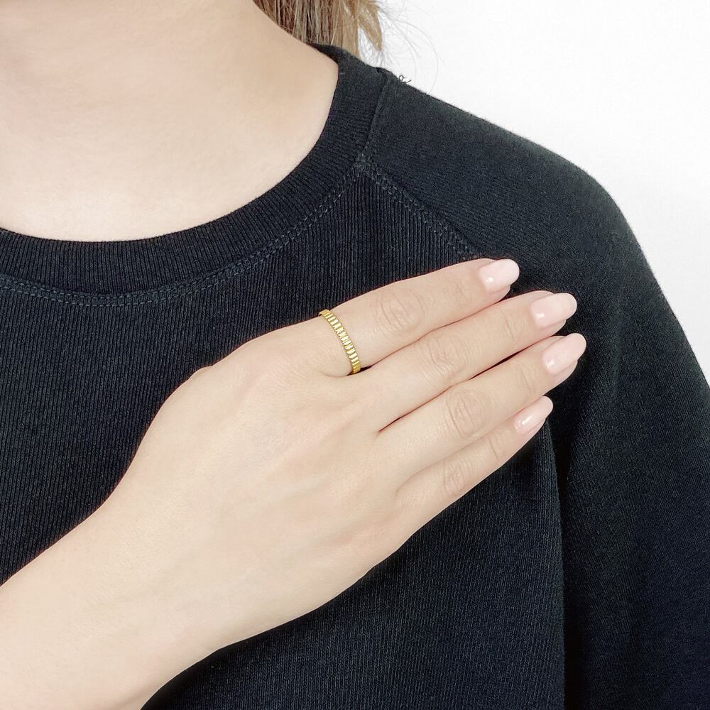 波打つ様な縦のラインが印象的な、ストライプデザインリング。