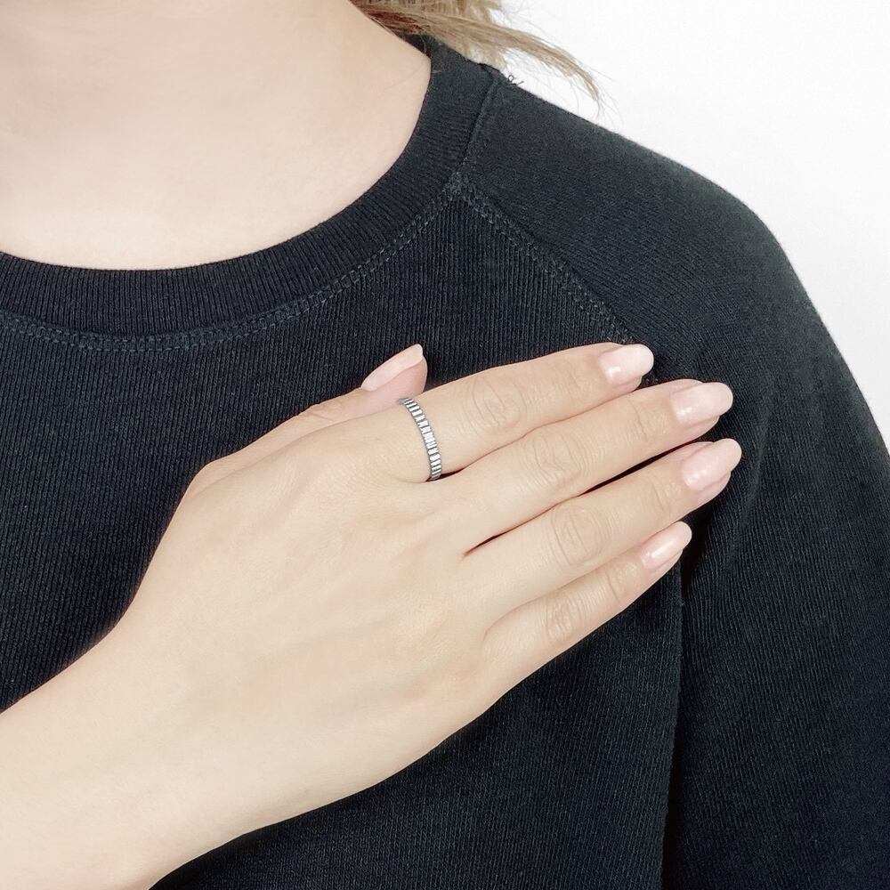 光沢のない落ち着いたマットな輝きが、シンプルながら少しモードな雰囲気に魅せてくれます。