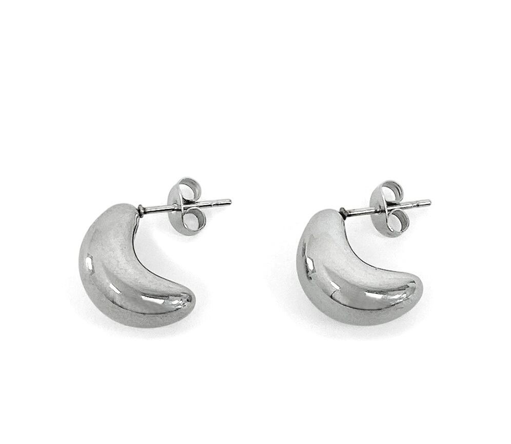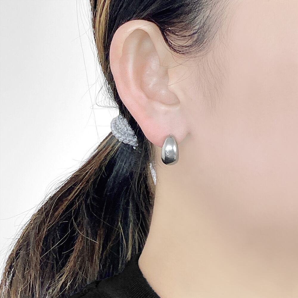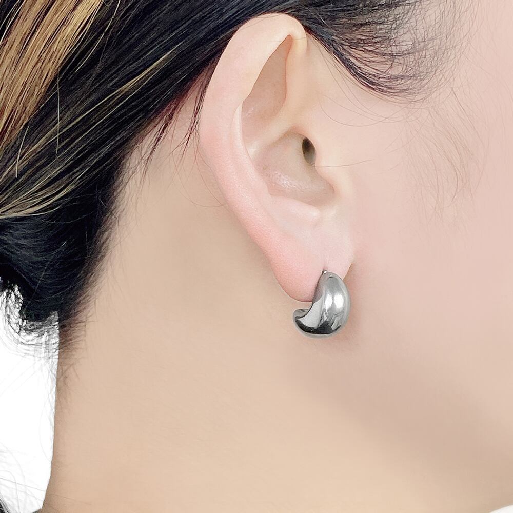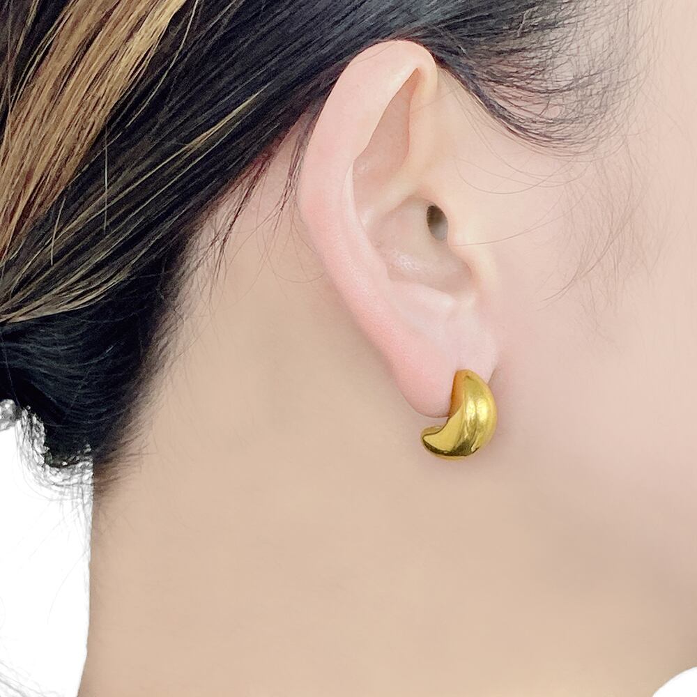 ぷっくりとした艶のあるフォルムがアクセントのステンレス製ムーンピアス。