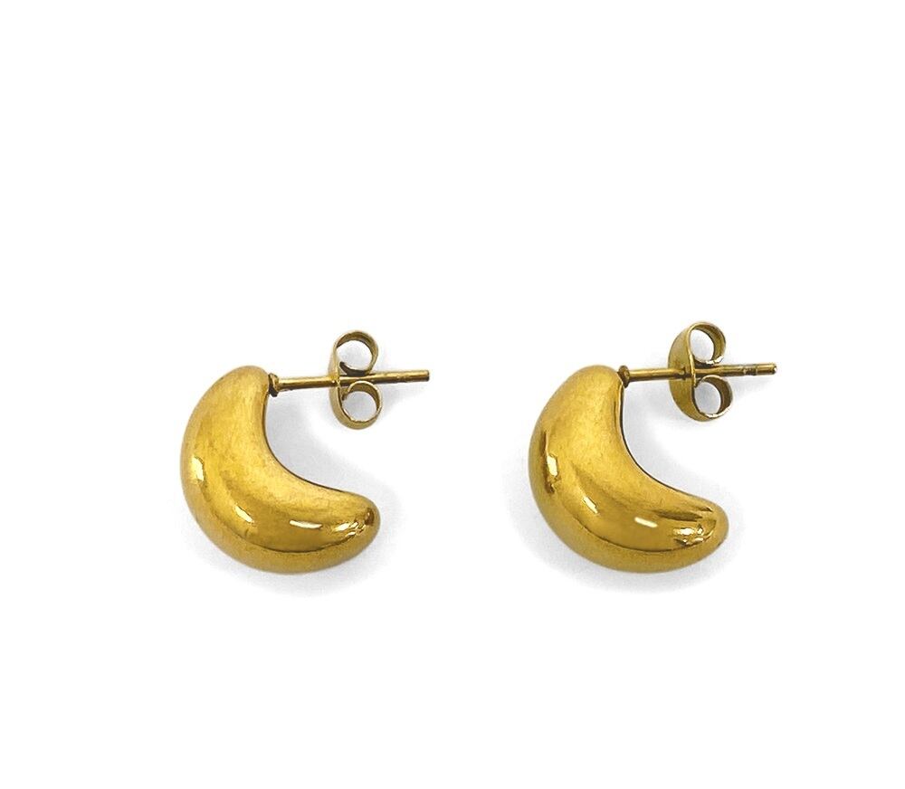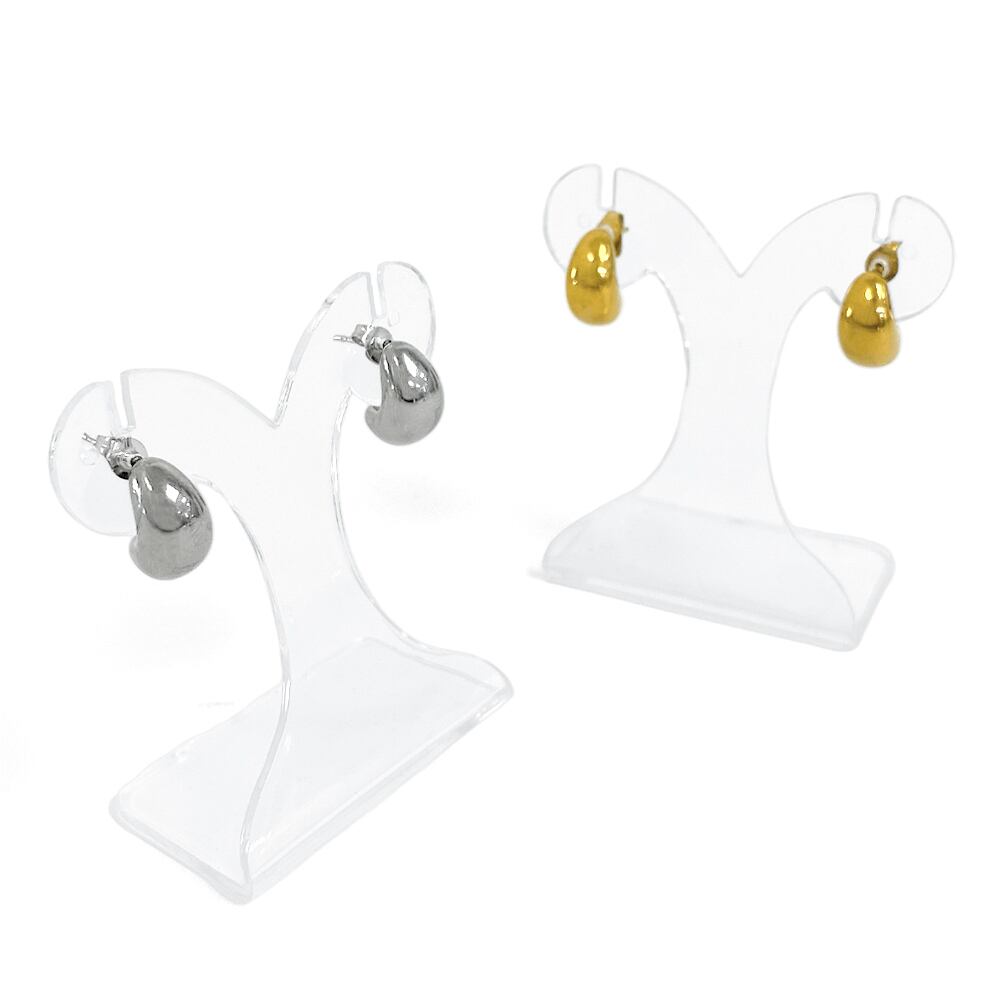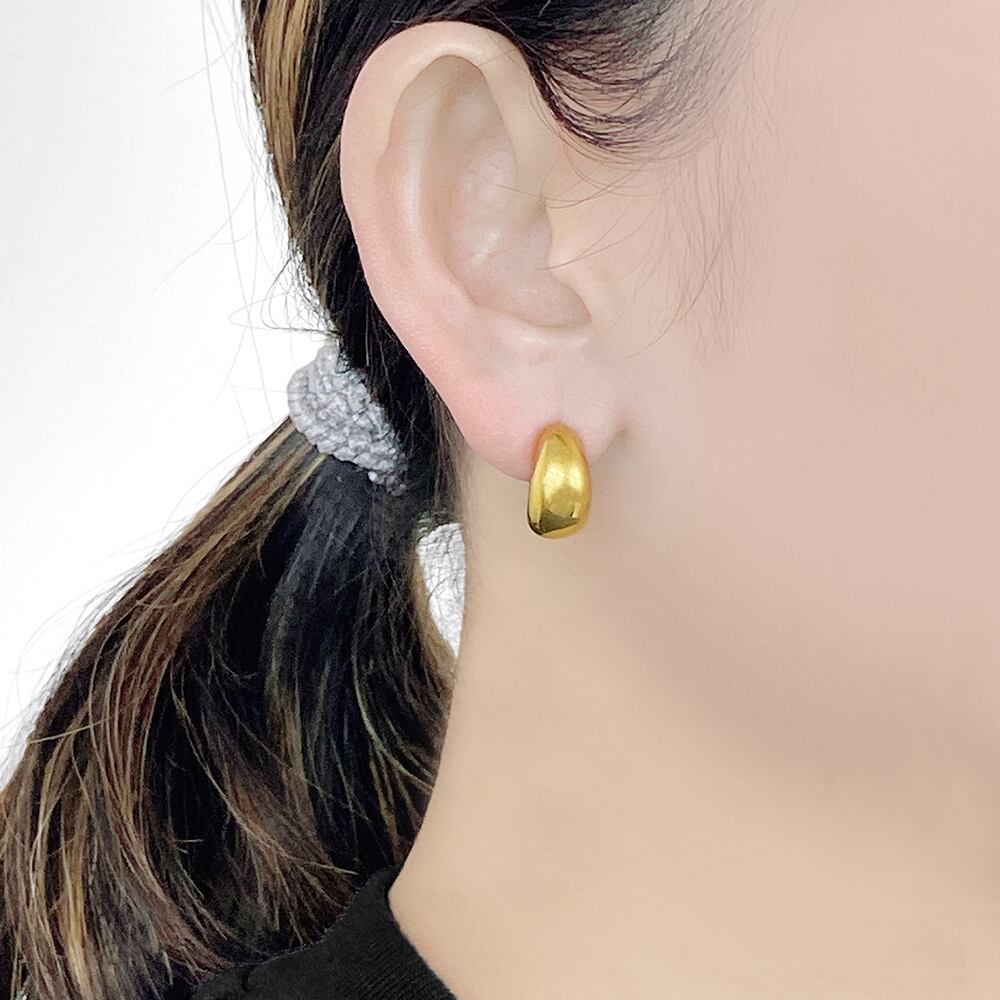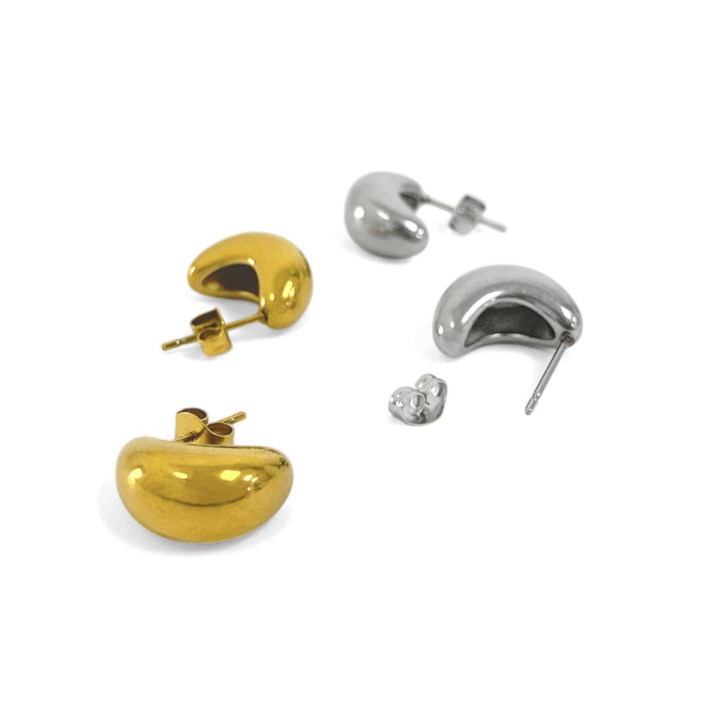 ぷっくりとした艶のあるフォルムがアクセントのステンレス製ムーンピアス。