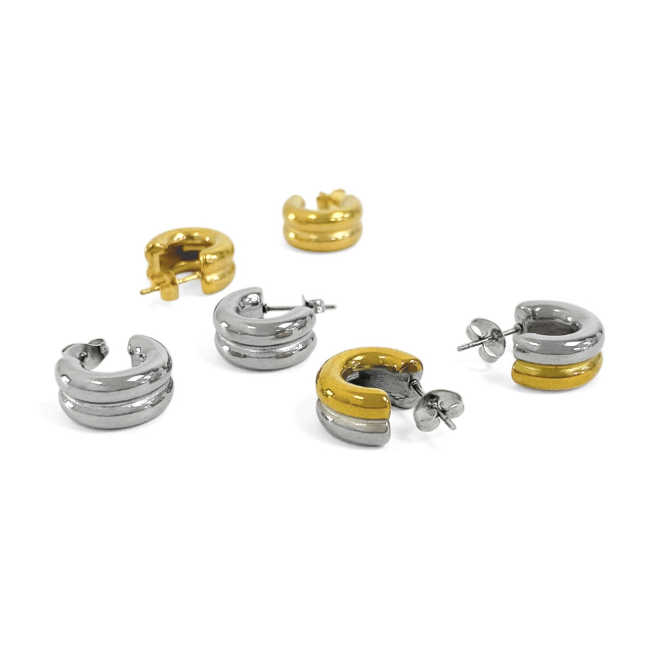 コロンとした愛らしいロールフォルムのC型フープピアス