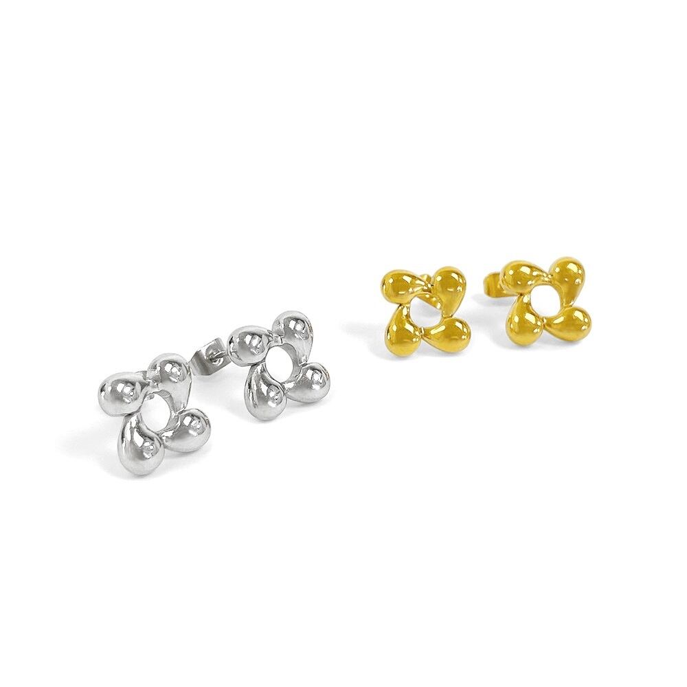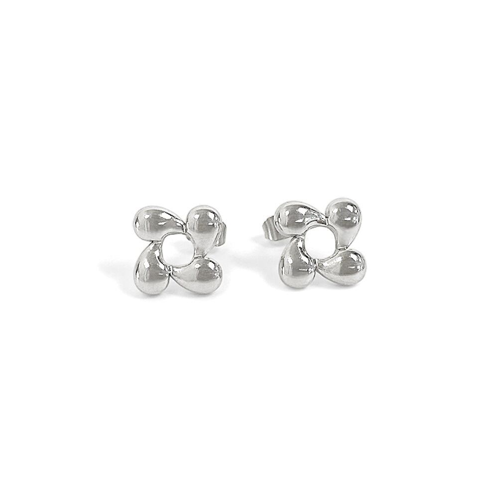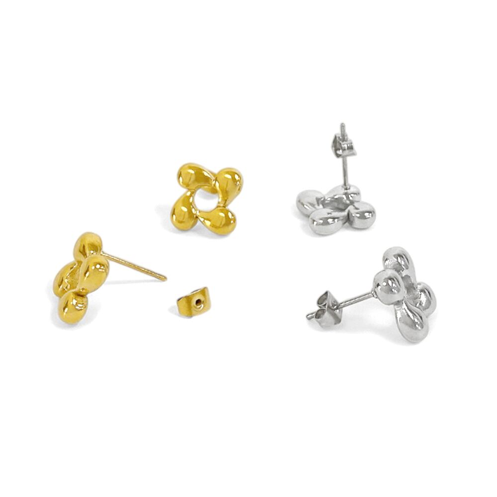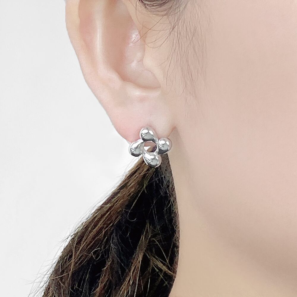 ぷっくりとしたフェミニンなデザインのステンレス製フラーワピアス。