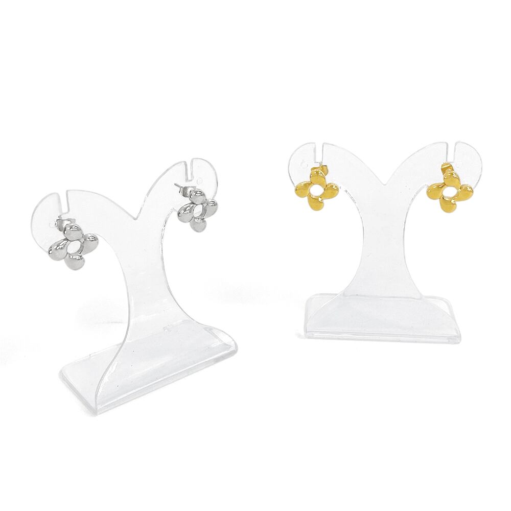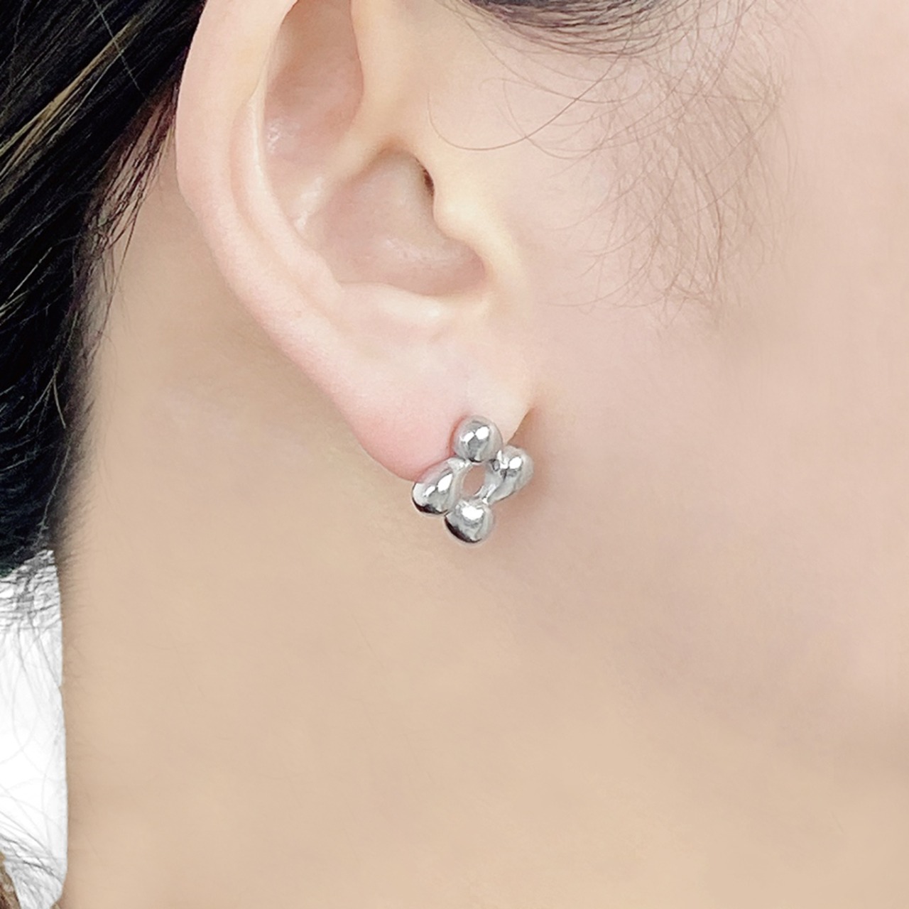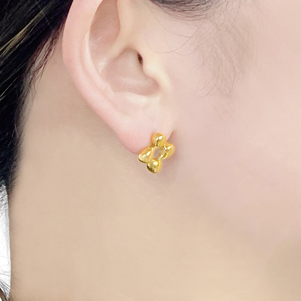 ぷっくりとしたフェミニンなデザインのステンレス製フラーワピアス。