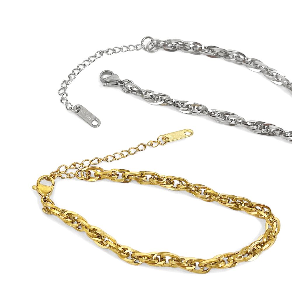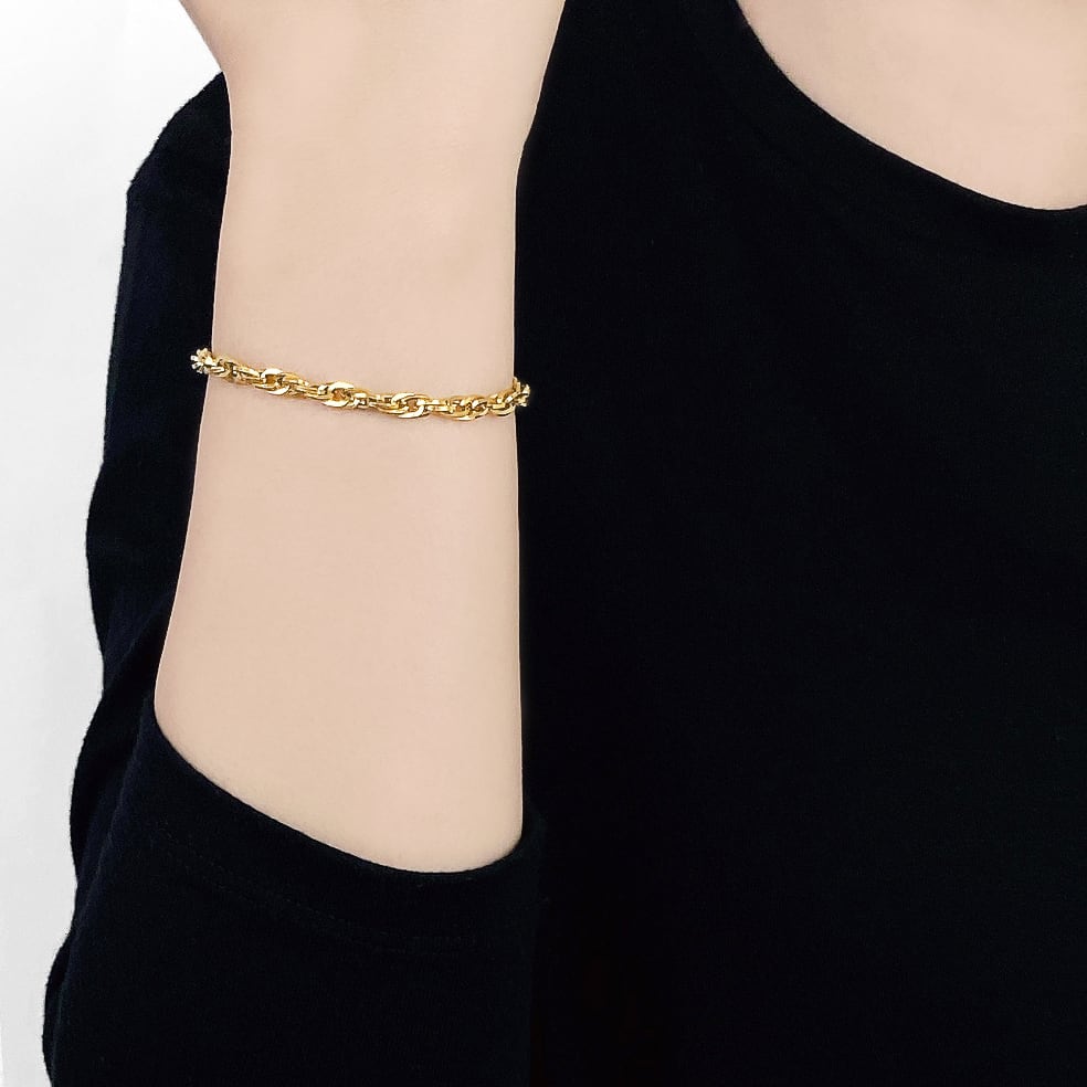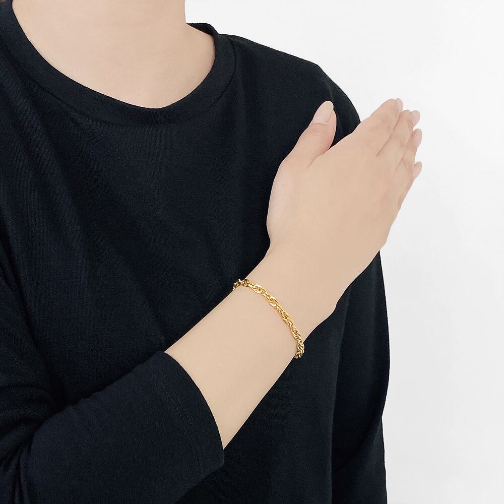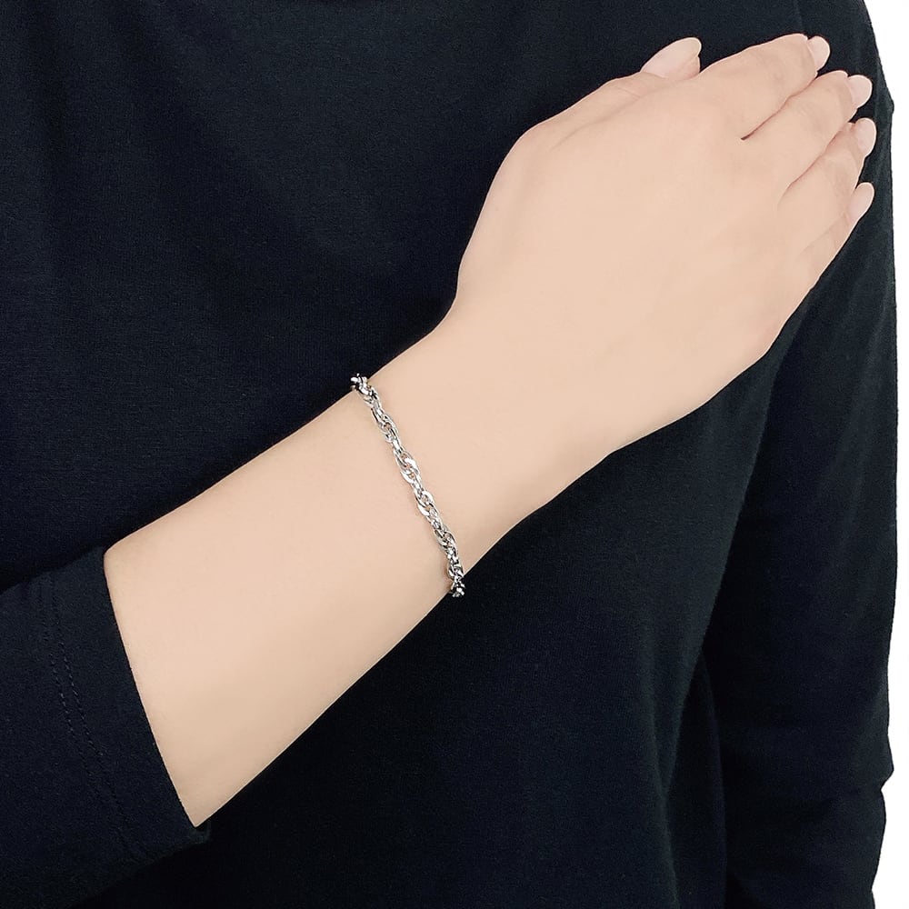 捻りを加えたデザインが特徴的なボリュームチェーンブレスレット。