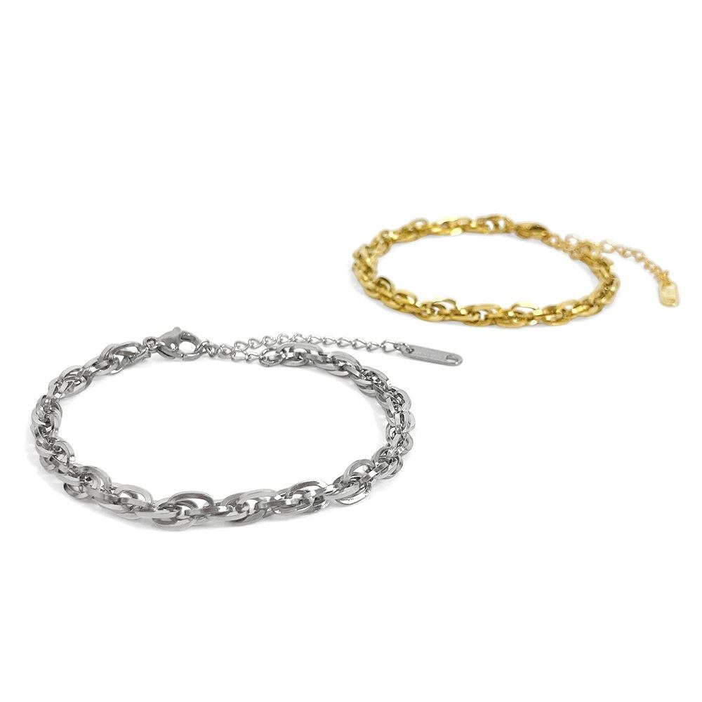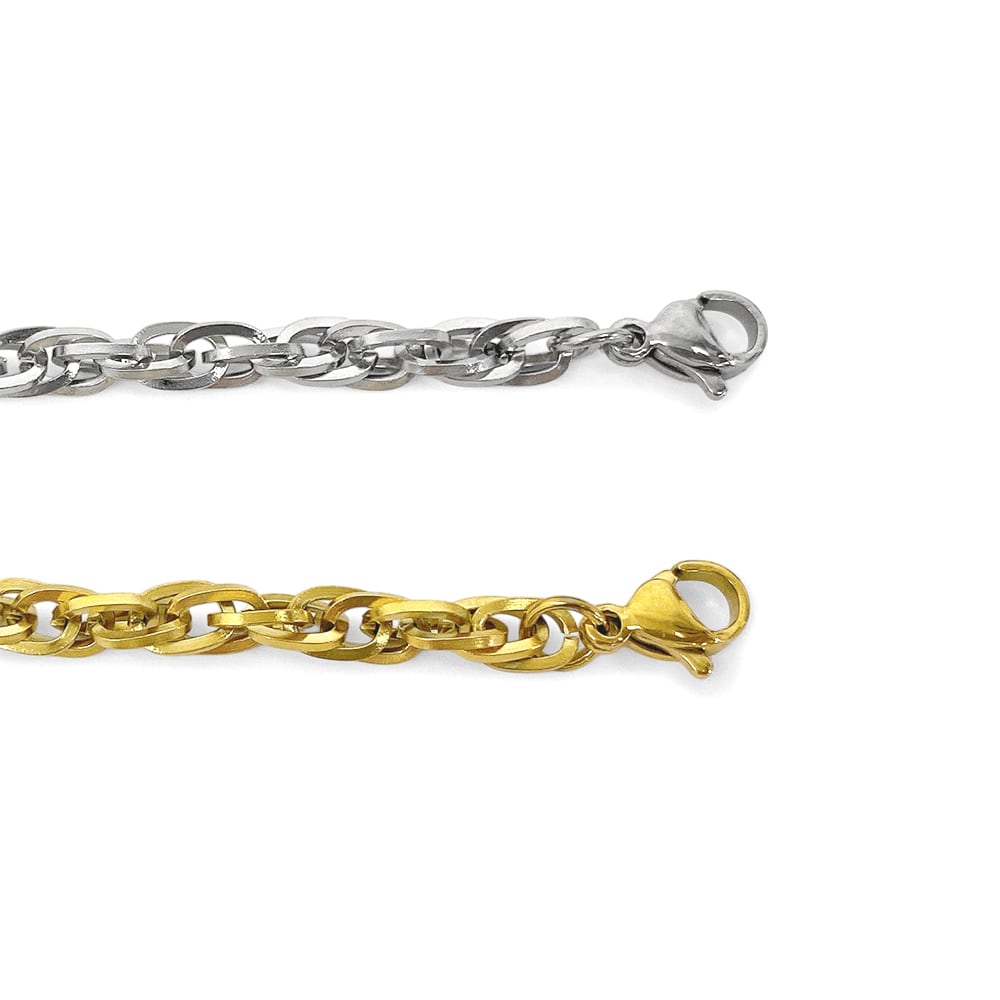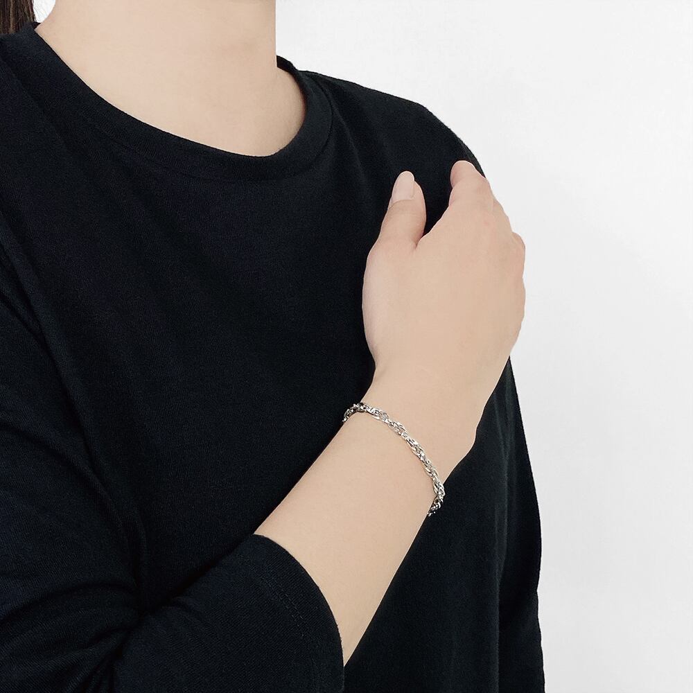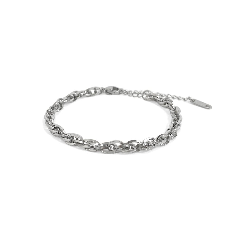 捻りを加えたデザインが特徴的なボリュームチェーンブレスレット。