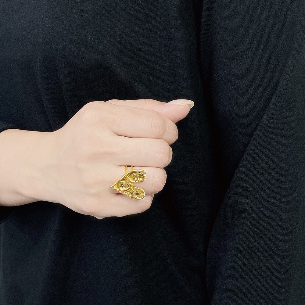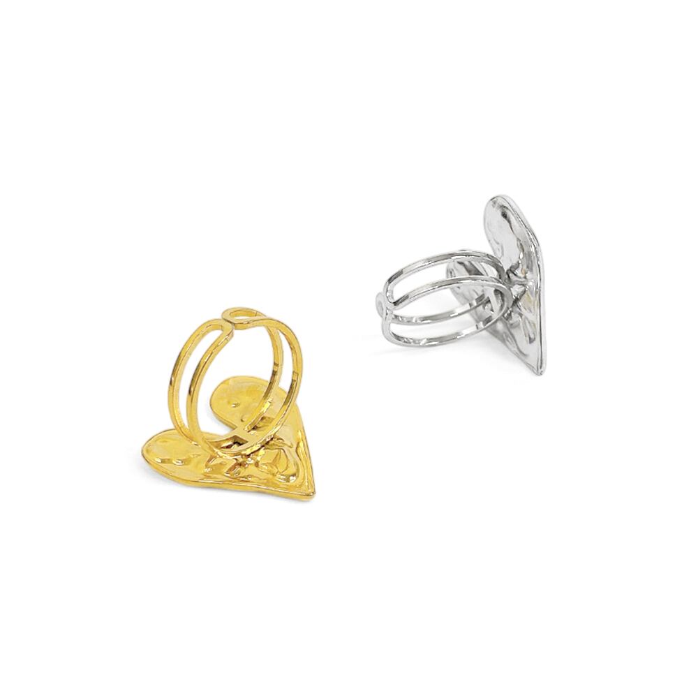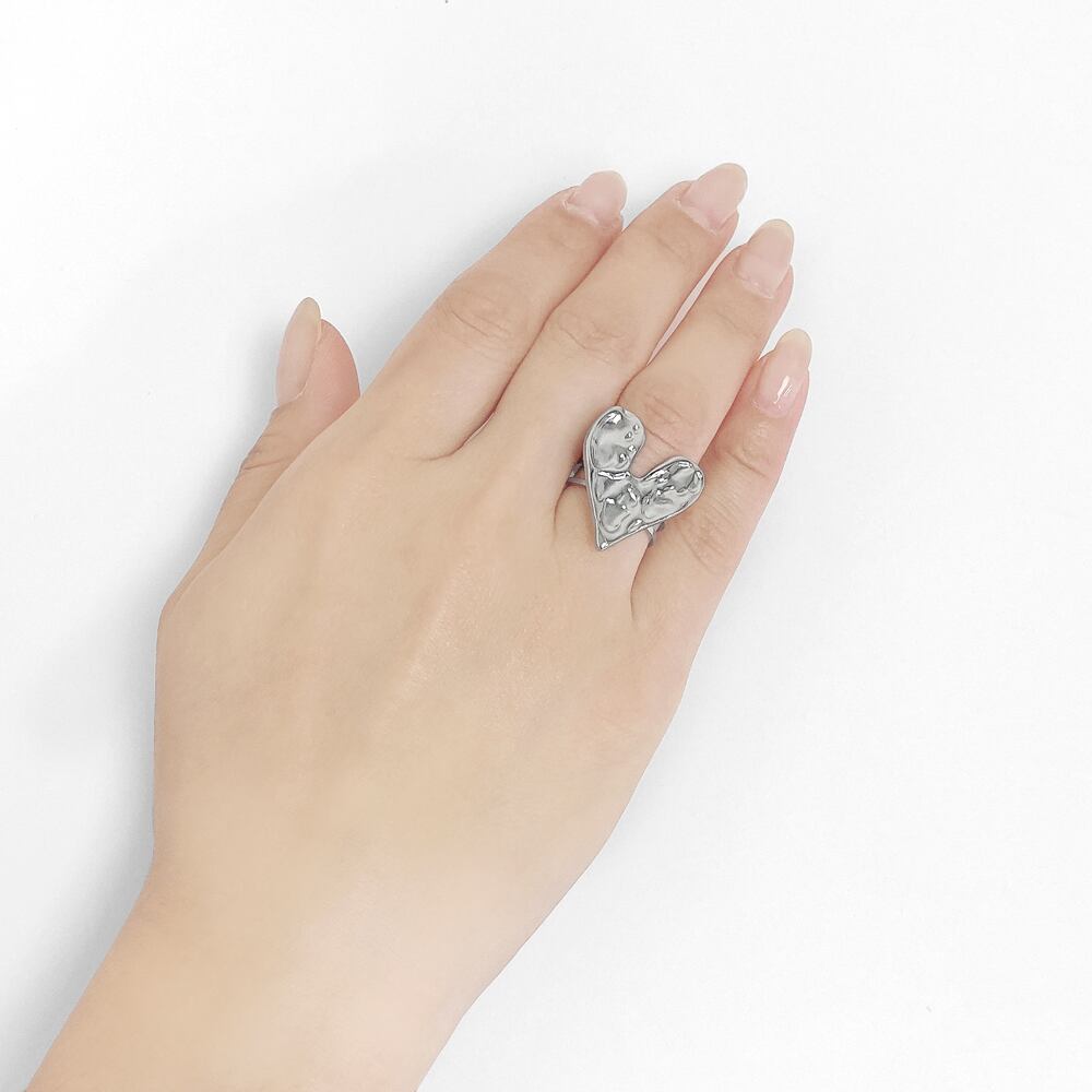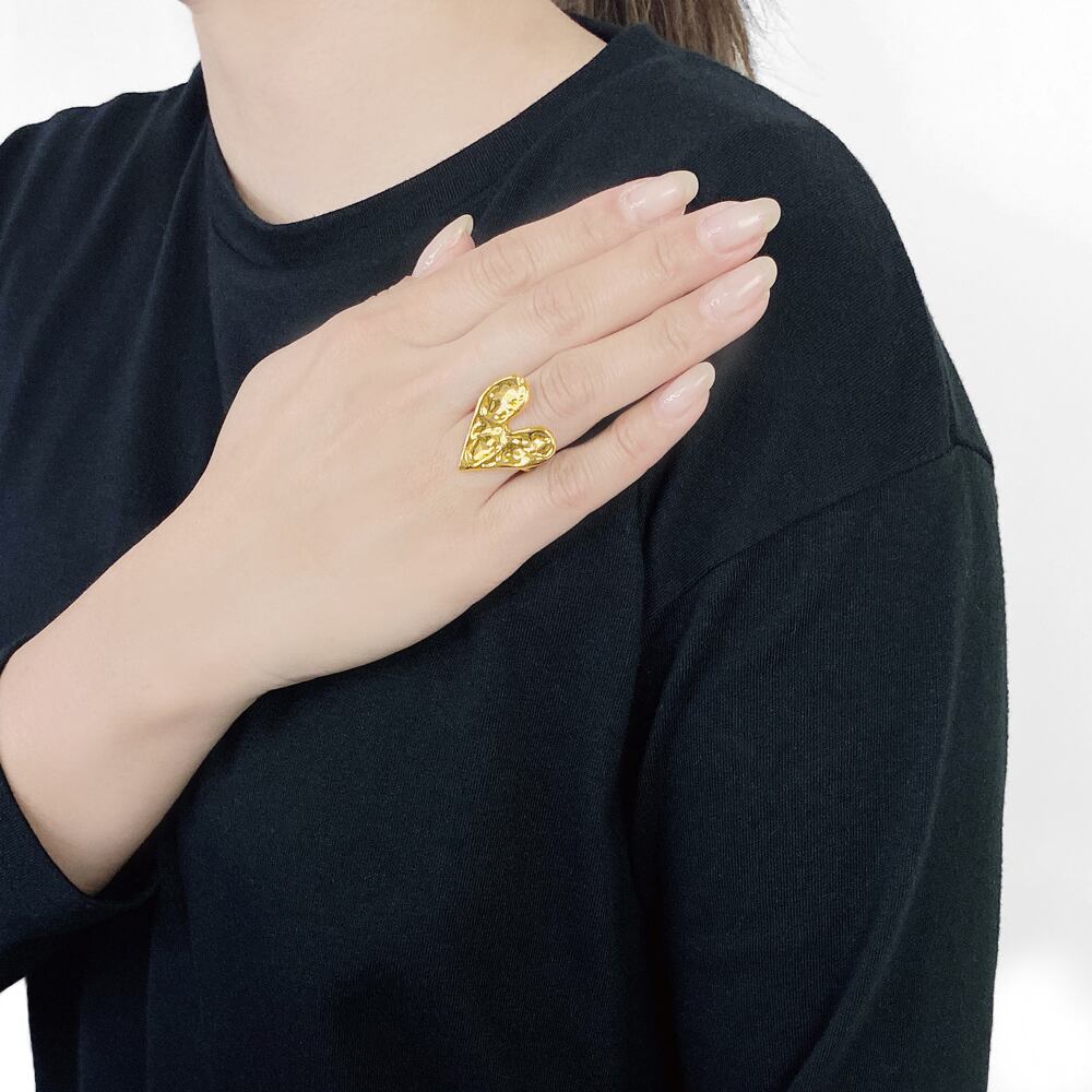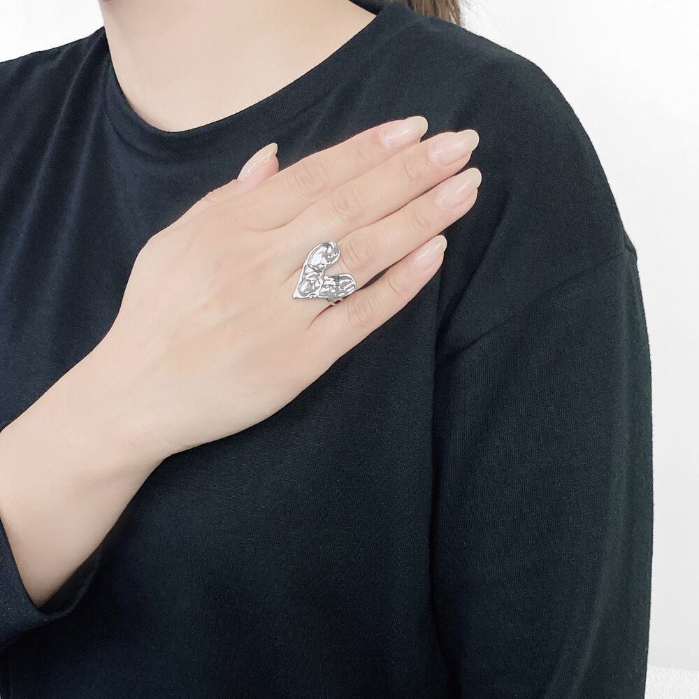 立体的なハートプレートが魅力のエンボスハートリング。