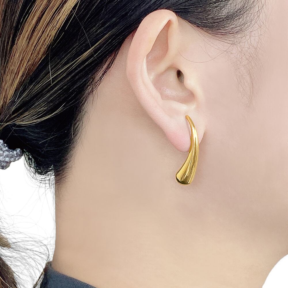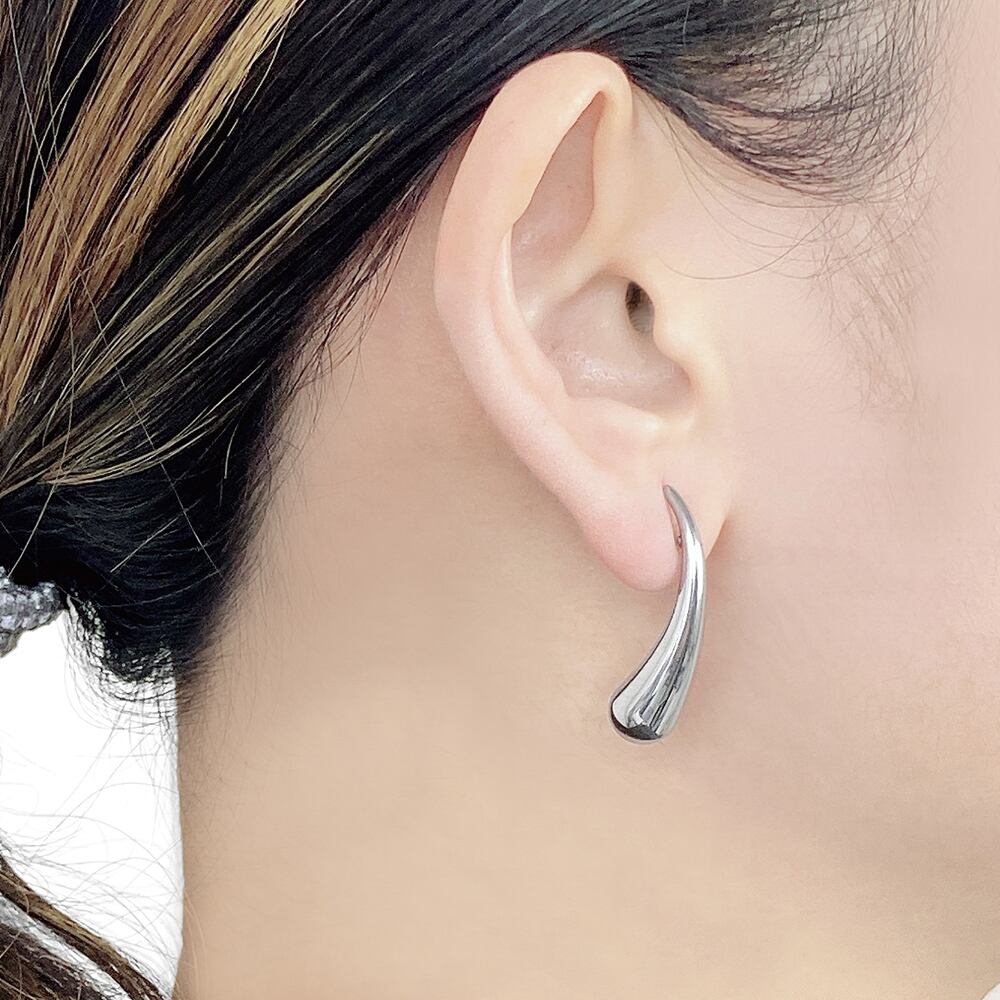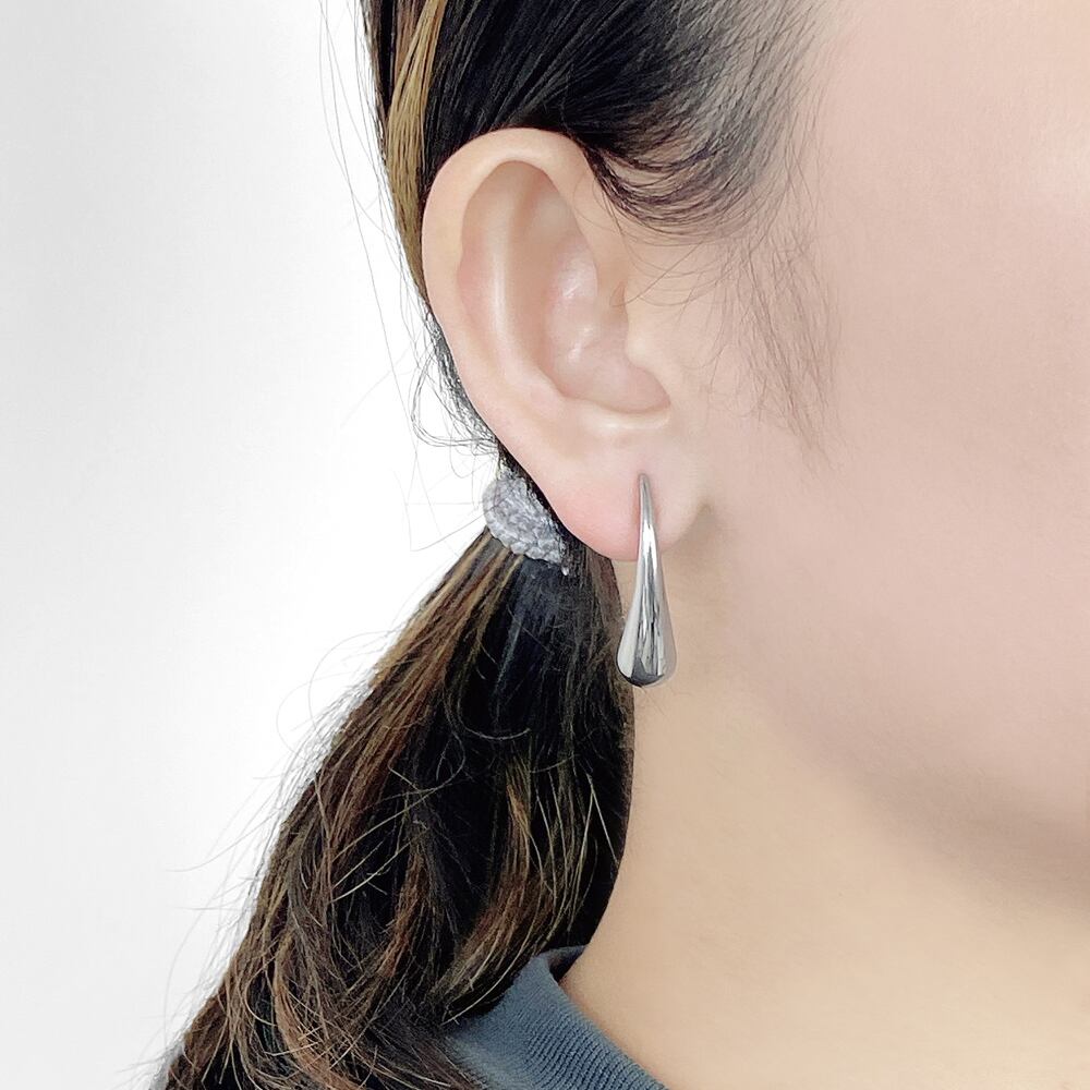 モード感あふれる、ドロップ型ステンレスメタルピアス。