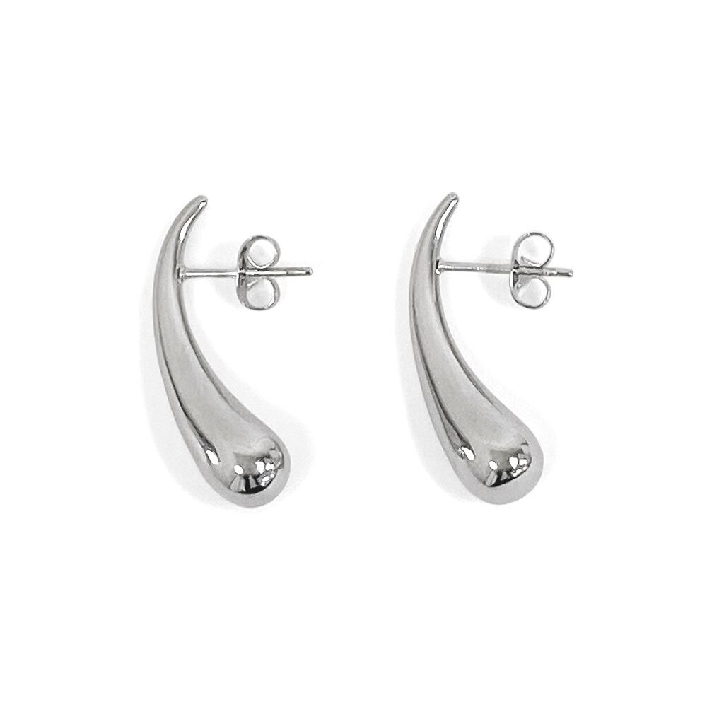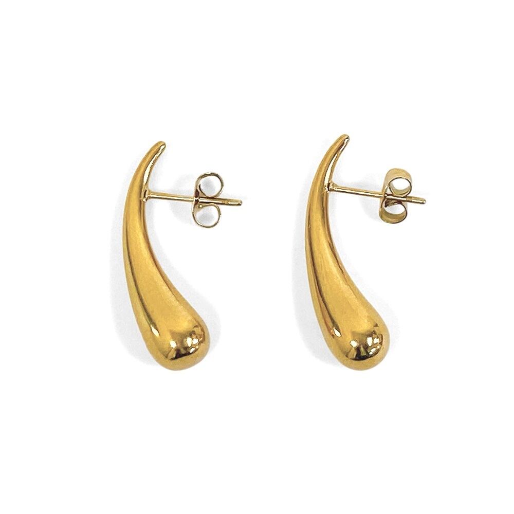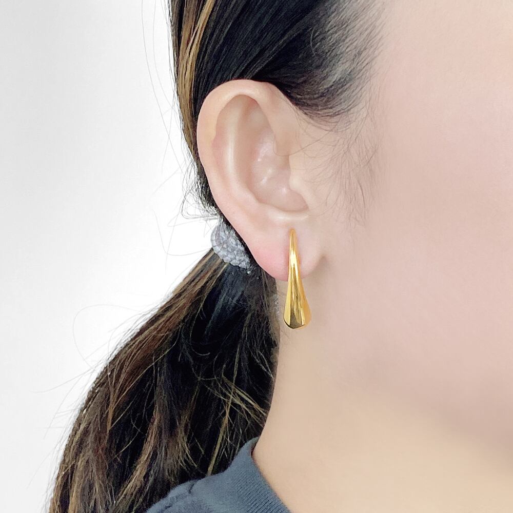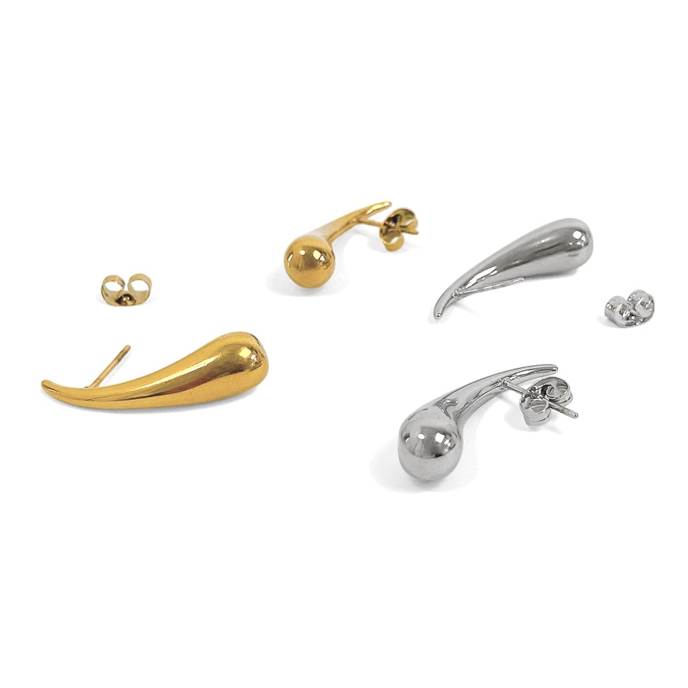 モード感あふれる、ドロップ型ステンレスメタルピアス。