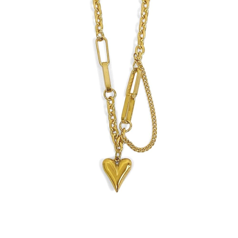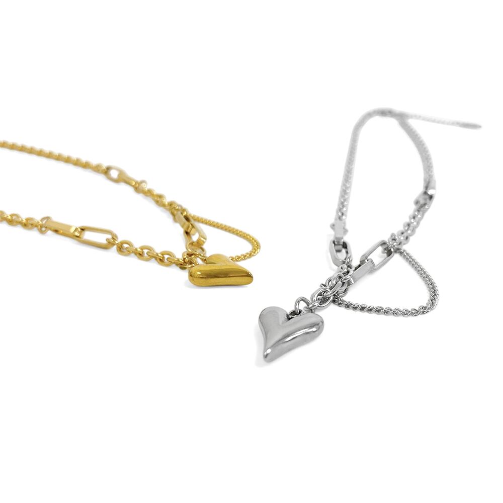 個性的なチェーンに愛らしいハートを添えたデザインは、甘さが程よく抑えられた大人可愛いルックスにマッチします。
