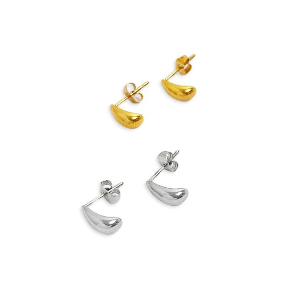 控えめで華奢なドロップデザインのステンレス製ミニピアス。