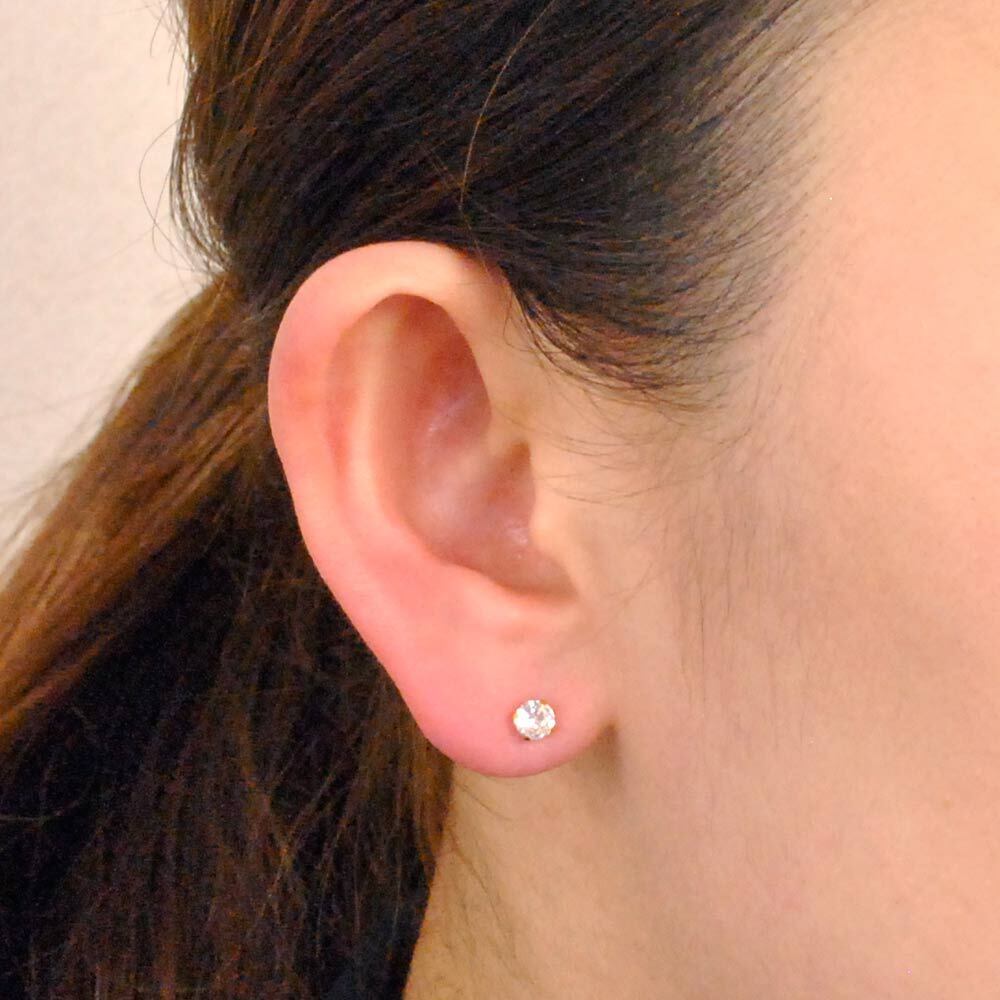 繊細かつ上品な輝きが顔周りを華やかに彩る一粒ジルコニアピアス♪