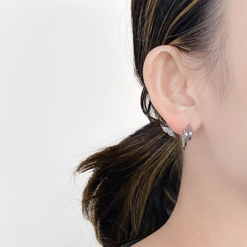 絶妙なデザインフォルムのニュアンスハートフープピアス。