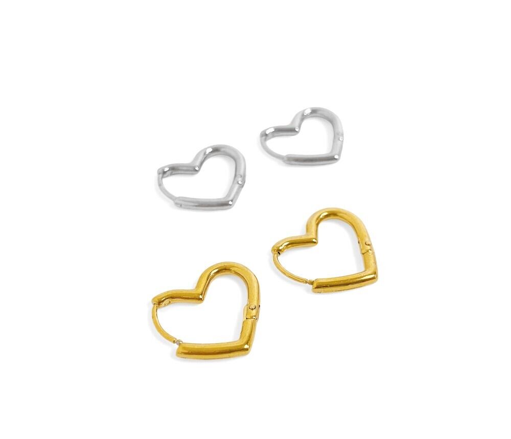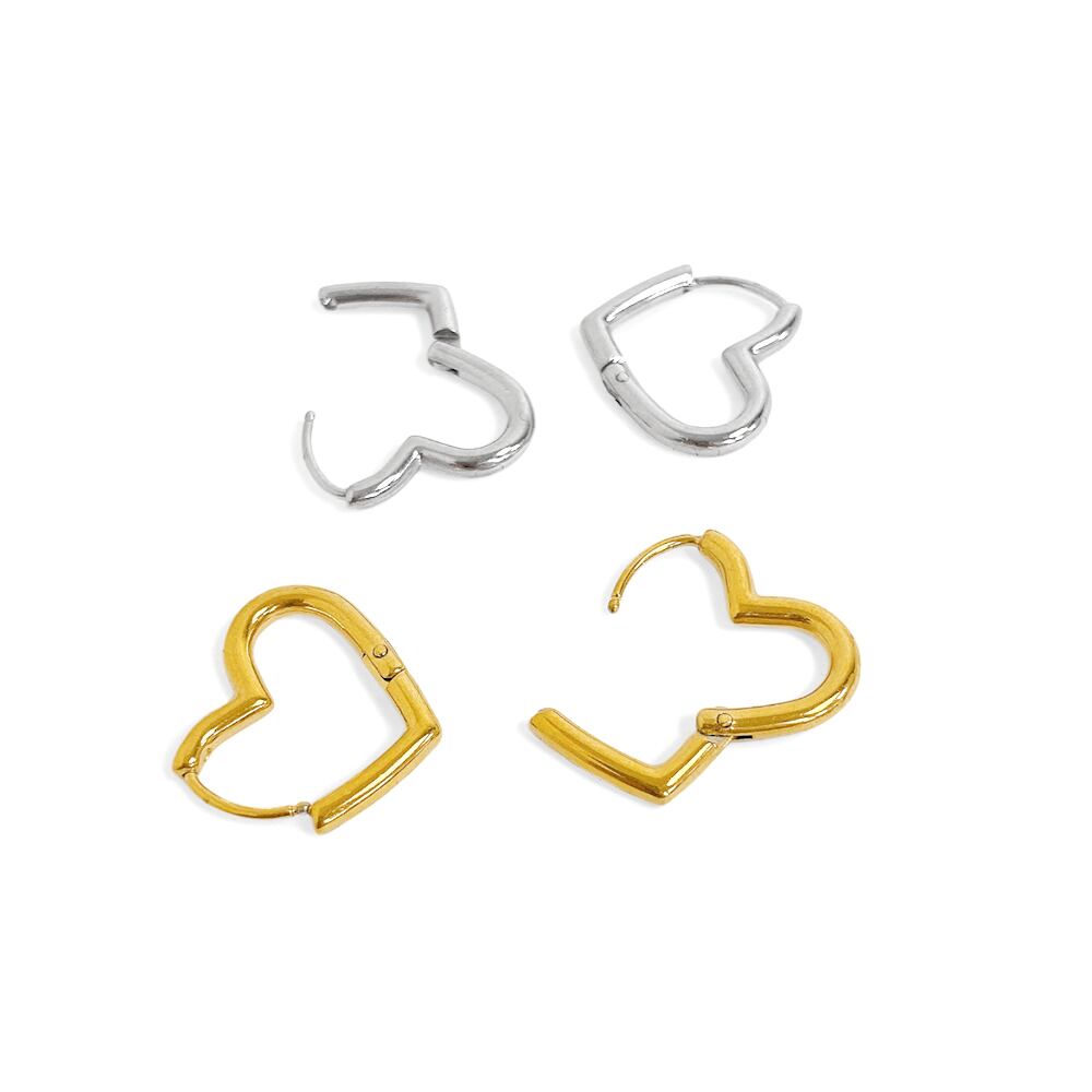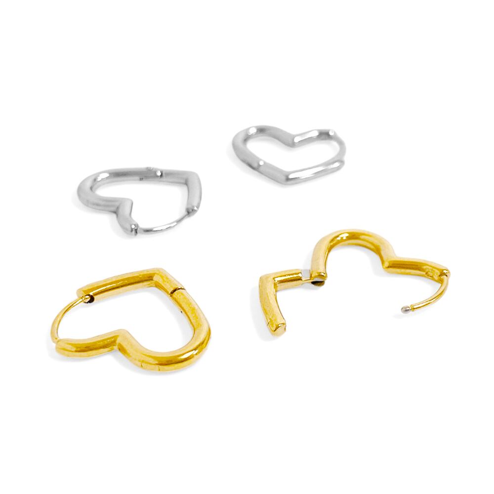 小ぶりで愛らしいステンレス製ハートフープピアス。