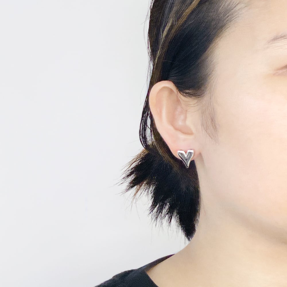ニュアンスを効かせたハートモチーフのステンレス製ピアス。